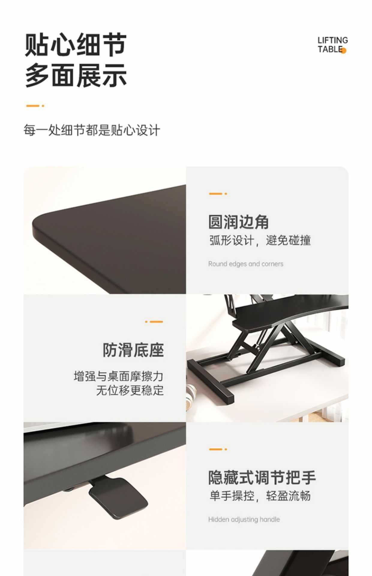• 흑요석 블랙, 더블 레이어 공압 리프팅 테이블 91*40cm