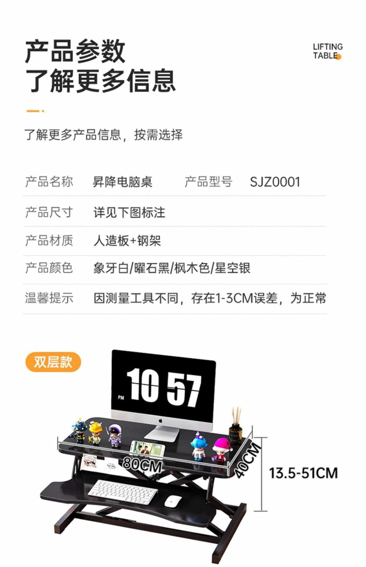 • 흑요석 블랙, 더블 레이어 공압 리프팅 테이블 80*40cm