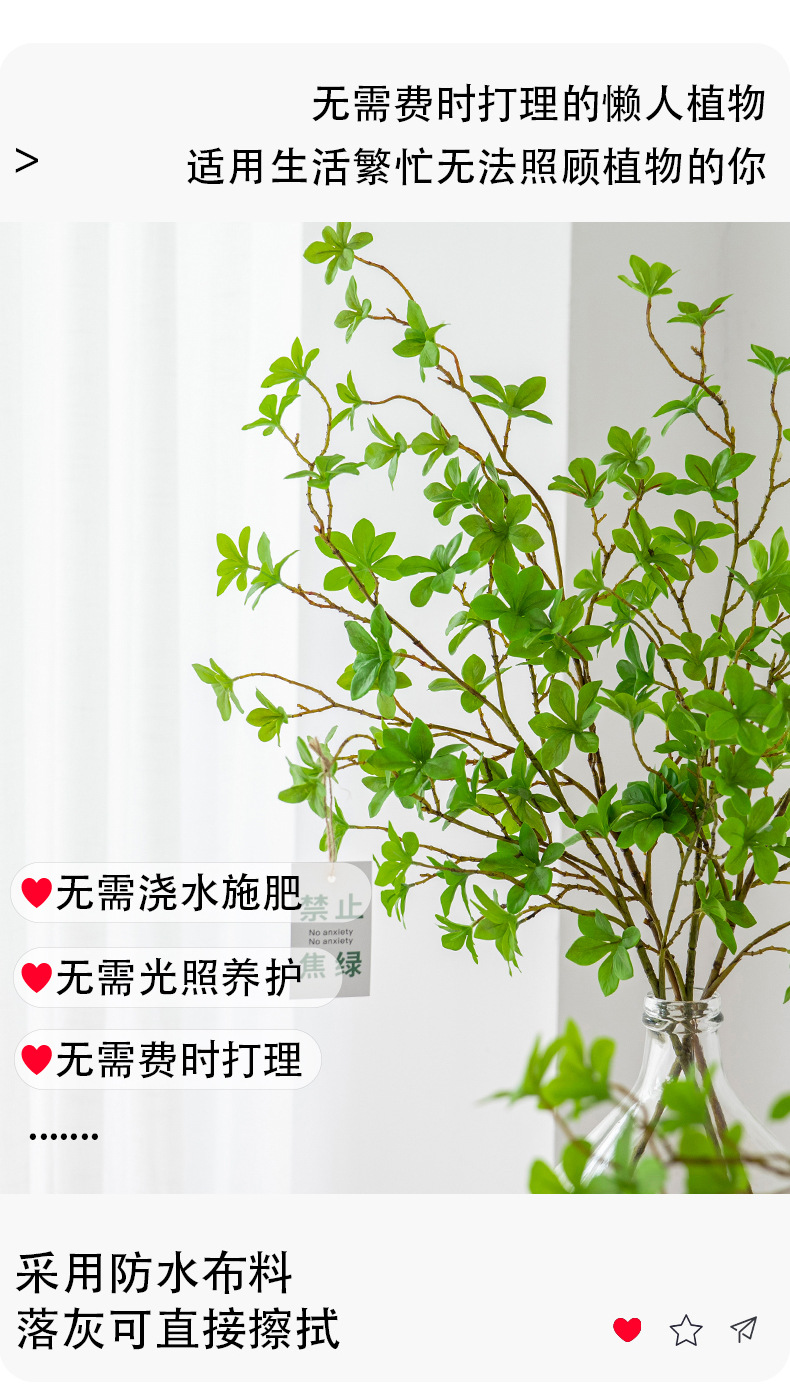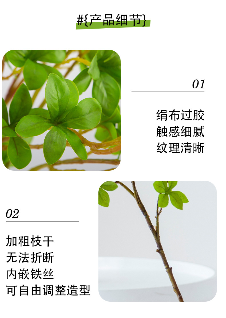 产品材质:绢布过胶叶子+塑料枝干+铁丝