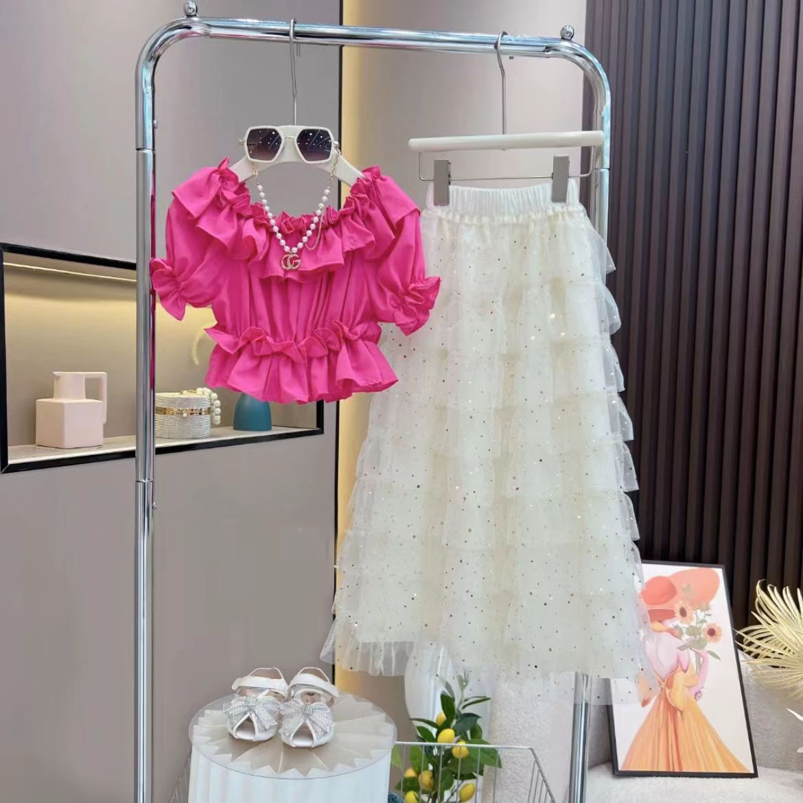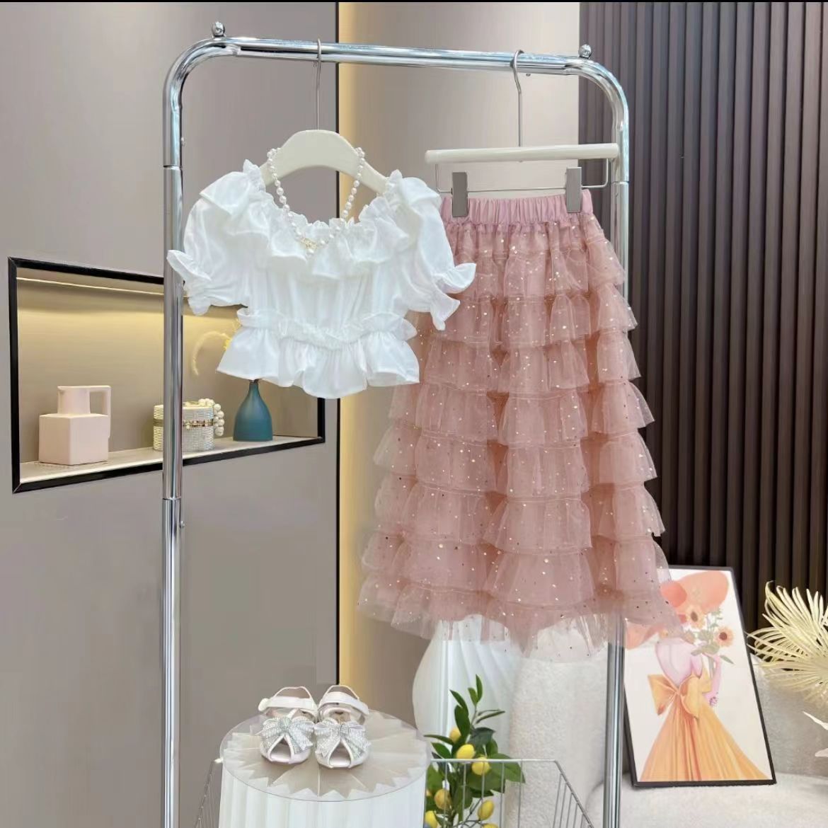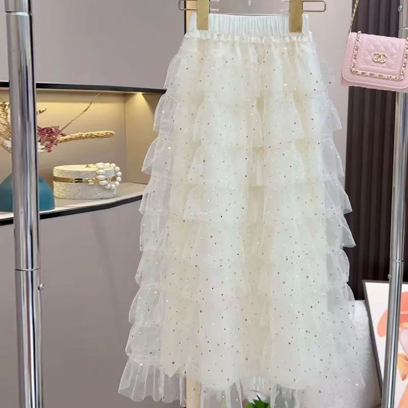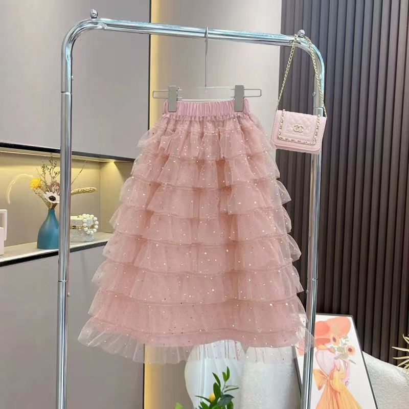 여자 케이크 스커트 여름 정장 2025 새로운 공주 반팔 셔츠, 세련되고 패셔너블하며 중대형 어린이를 위한 다용도 겉옷스토어 가기