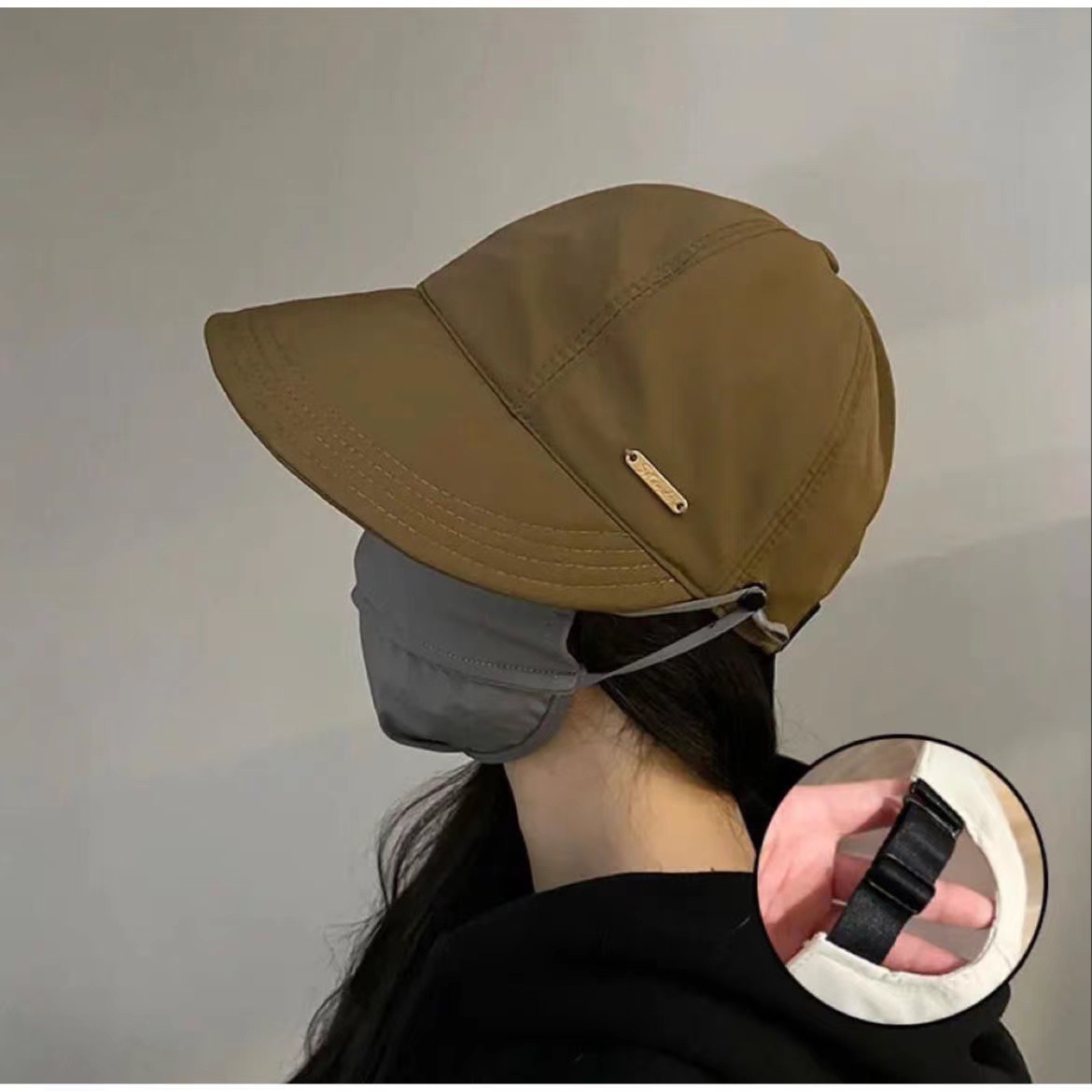 2024 새로운 어부 모자 큰 머리 둘레 봄과 여름 자외선 차단 캡 마스크 차양 선 스크린 캡 여성스토어 가기
