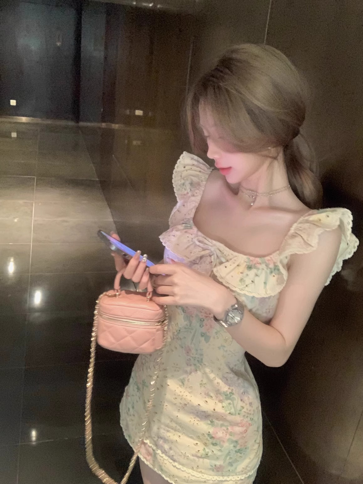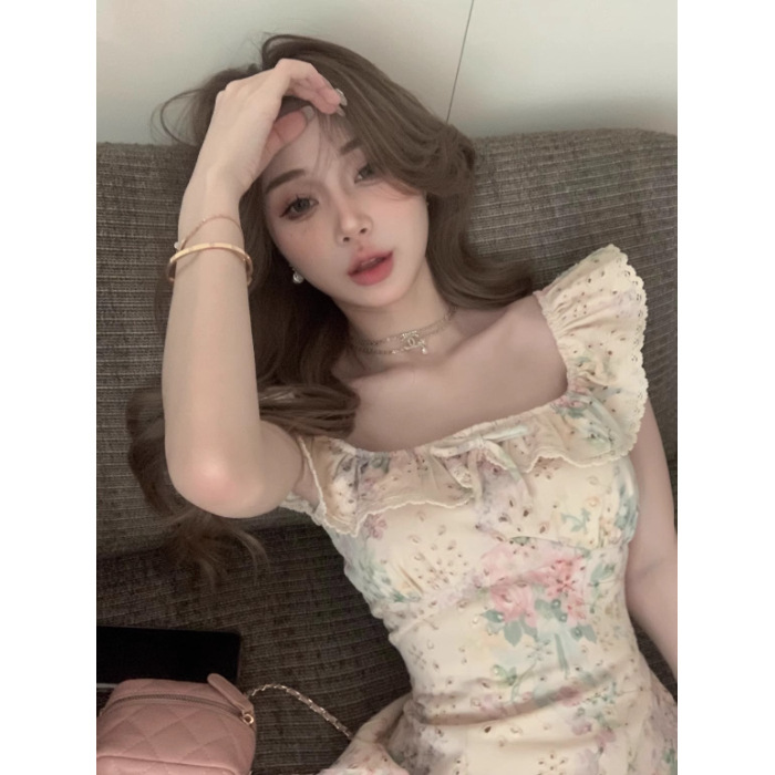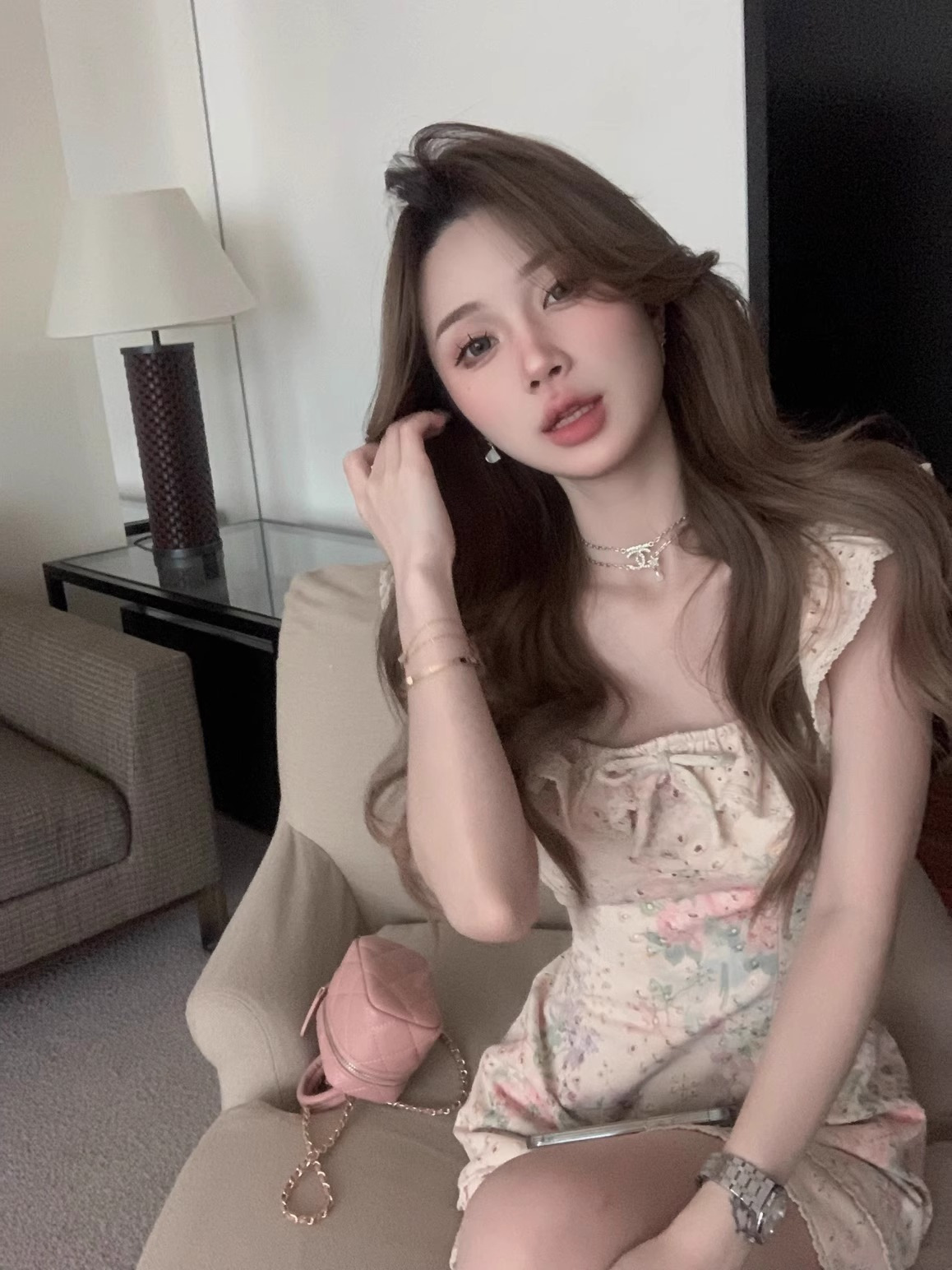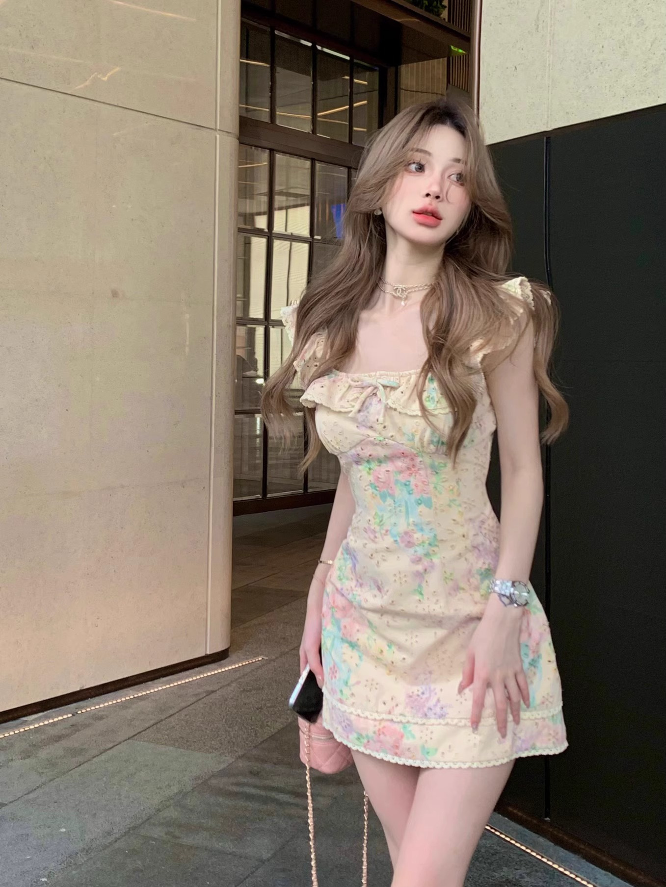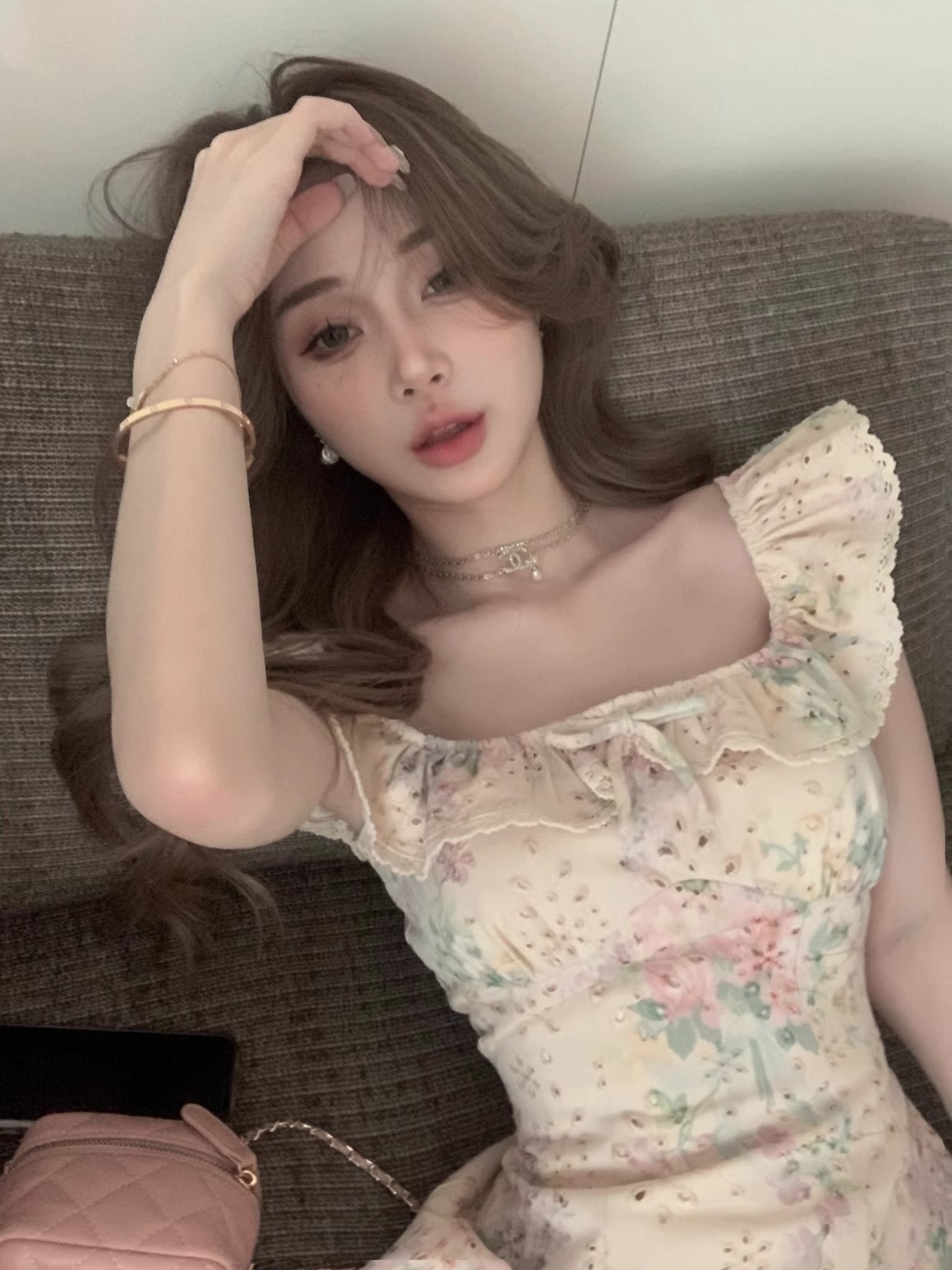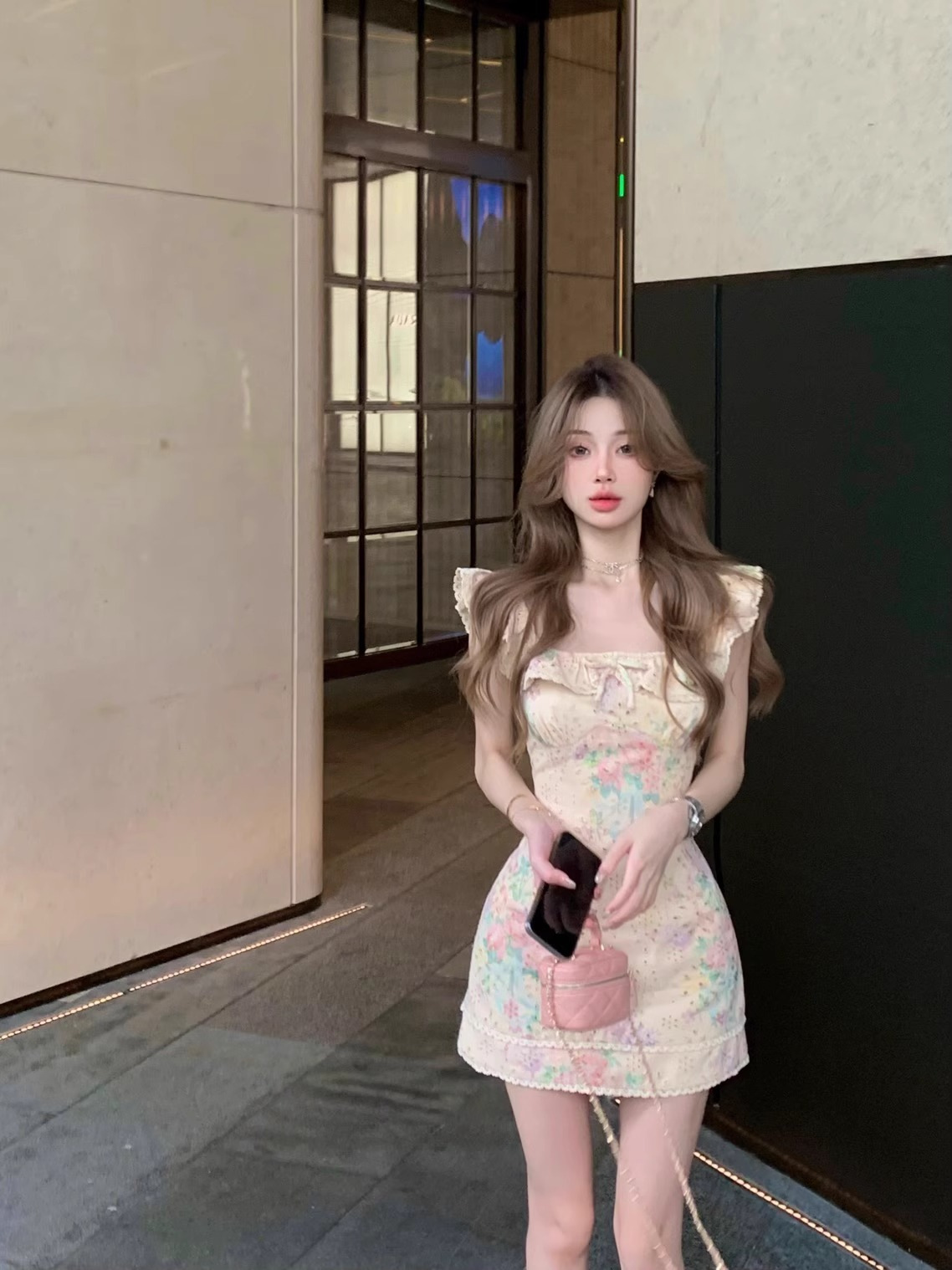 봄과 여름 프랑스 풍부한 꽃 짧은 원피스 꽃 우아한 원피스 해변 해변 순수한 욕망 뜨거운 소녀 원피스