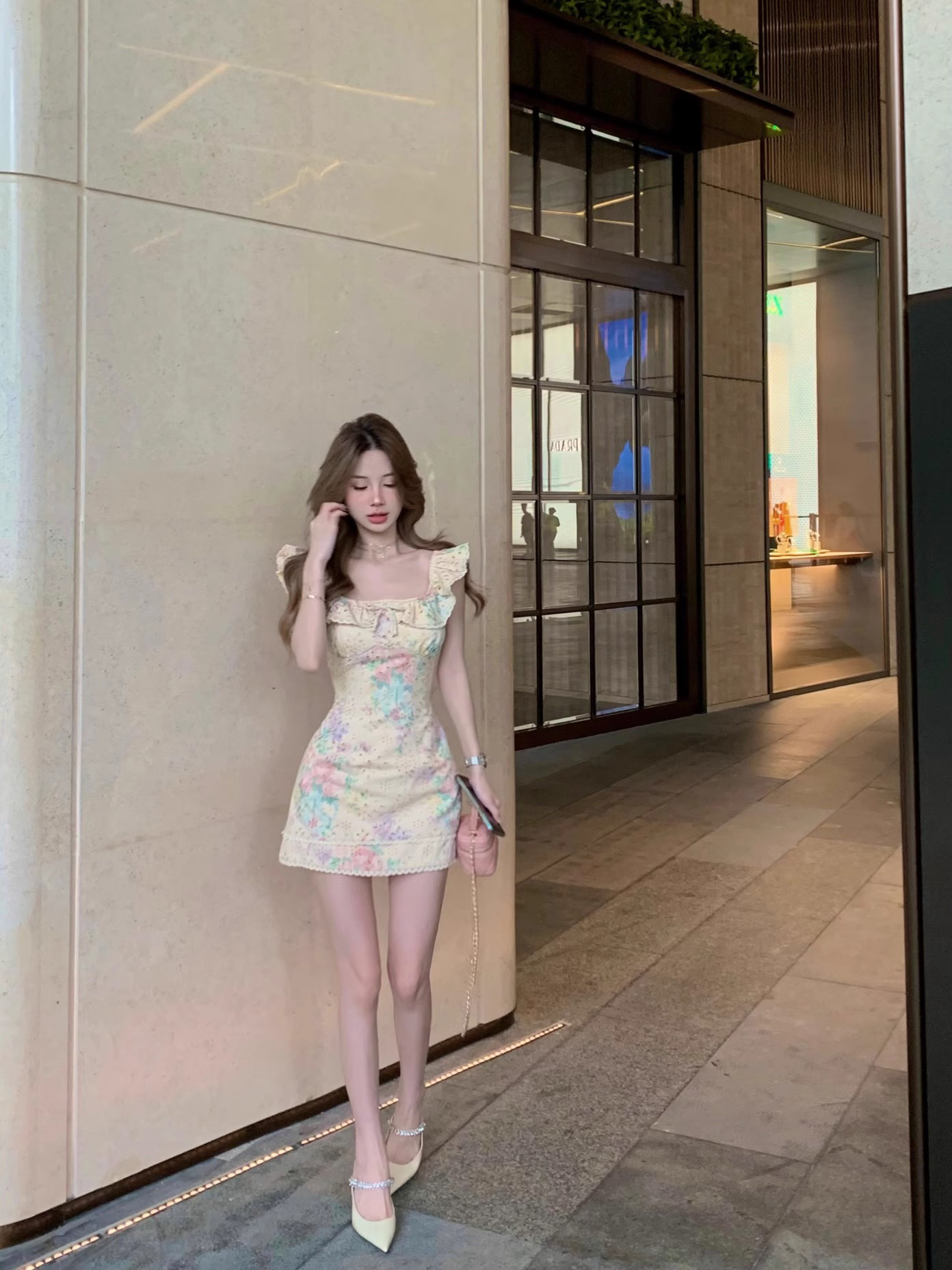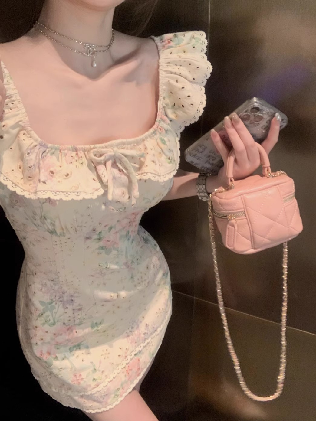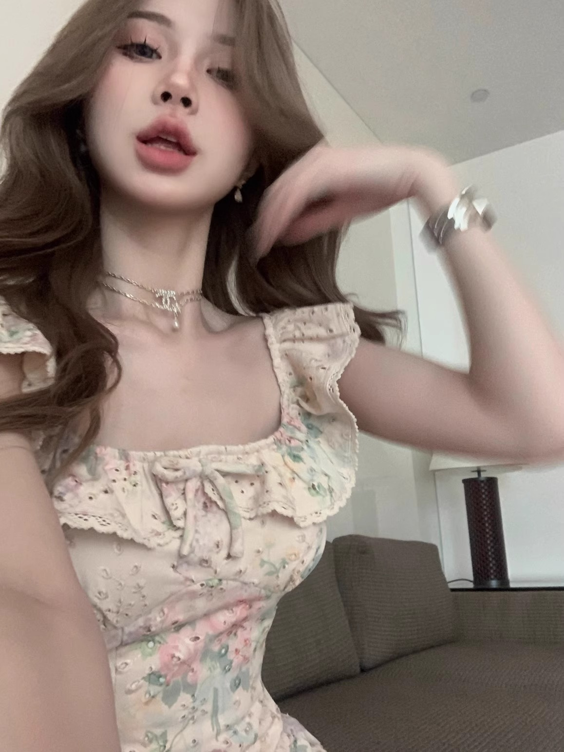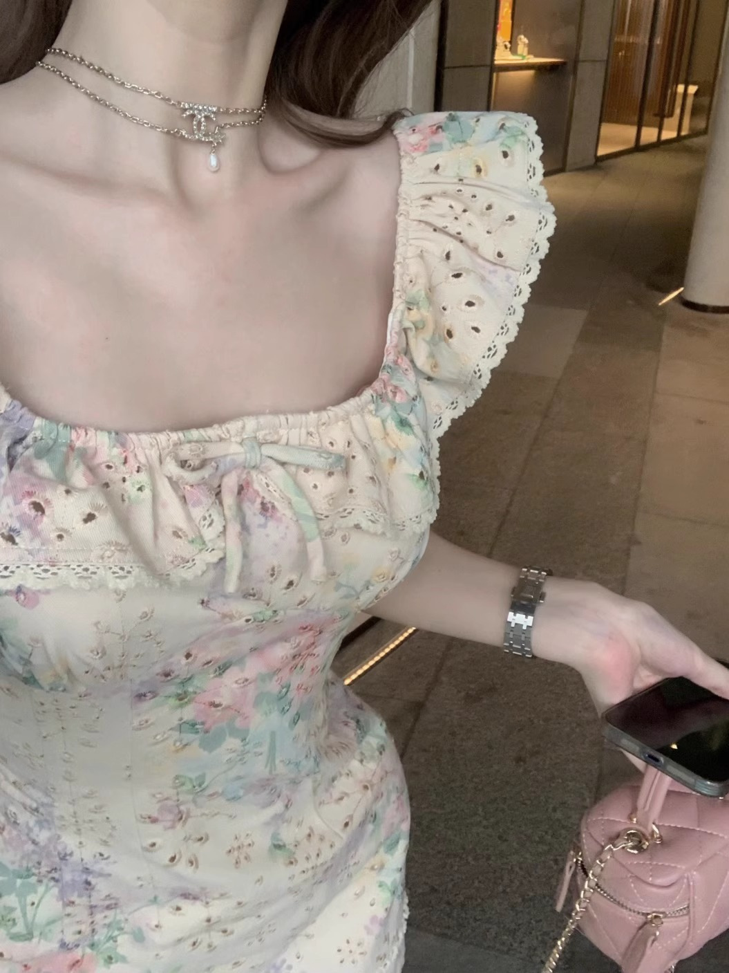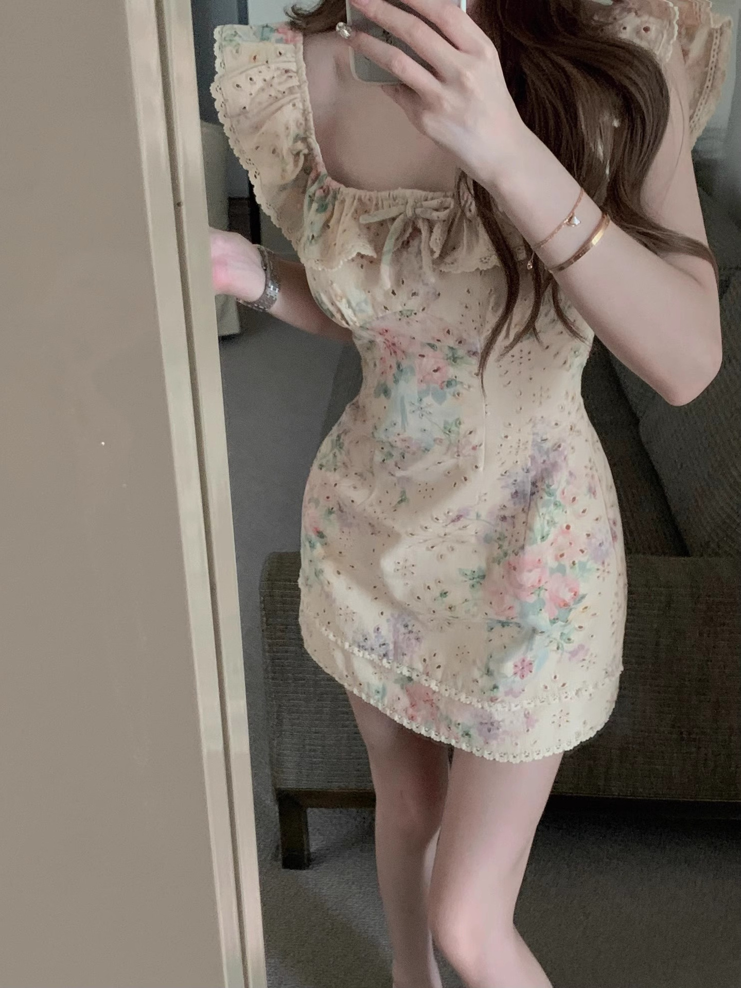 봄과 여름 프랑스 풍부한 꽃 짧은 원피스 꽃 우아한 원피스 해변 해변 순수한 욕망 뜨거운 소녀 원피스