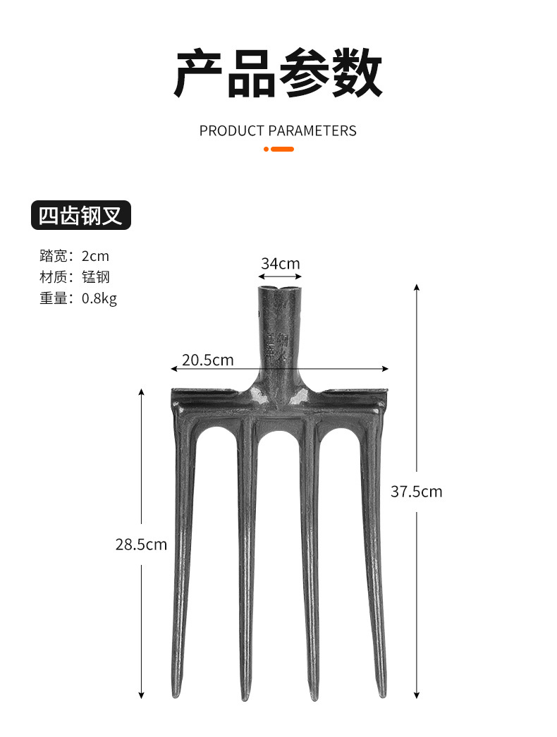 • 4개의 이빨 강철 포크 + 1.4m개의 나무 막대기*스테인리스 스틸*플랫 괭이*나무