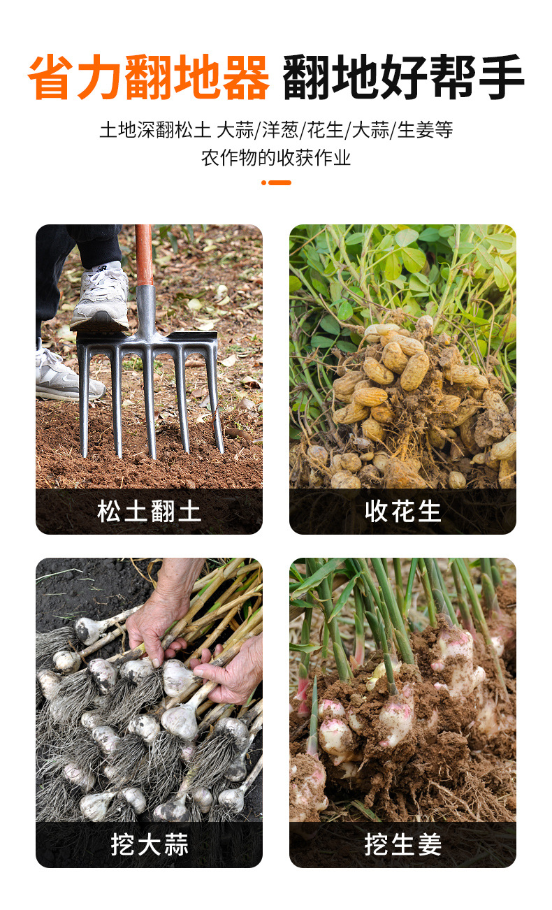 스틸 포크 망간 스틸 랜드 터닝 아티팩트 토양 풀린 철 포크 농업 포크 Hoe 농업 도구 발굴 마늘 대나무 토양스토어 가기