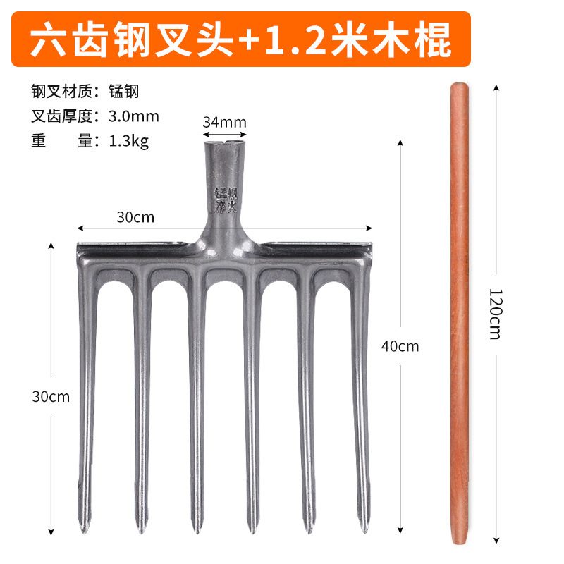 • 6개의 이빨 강철 포크 + 1.2m개의 나무 막대기*스테인리스 스틸*플랫 괭이*나무