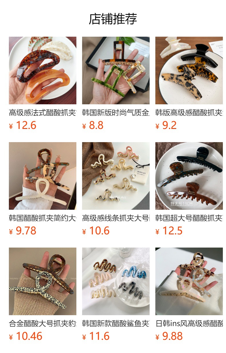 Acetic Acid Grab 클립 고급 센스 대형 헤어 클립 간단한 디자인 센스 하이 엔드 상어 클립 헤어 액세서리스토어 가기
