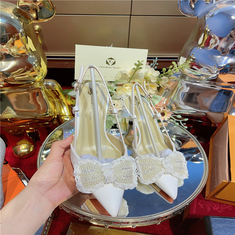 프랑스 웨딩 신발 Xiuhe 웨딩 원피스 Baotou 신부 신발 피곤하지 않은 발 2024 새로운 흰색 하이힐 스틸레토 힐스토어 가기