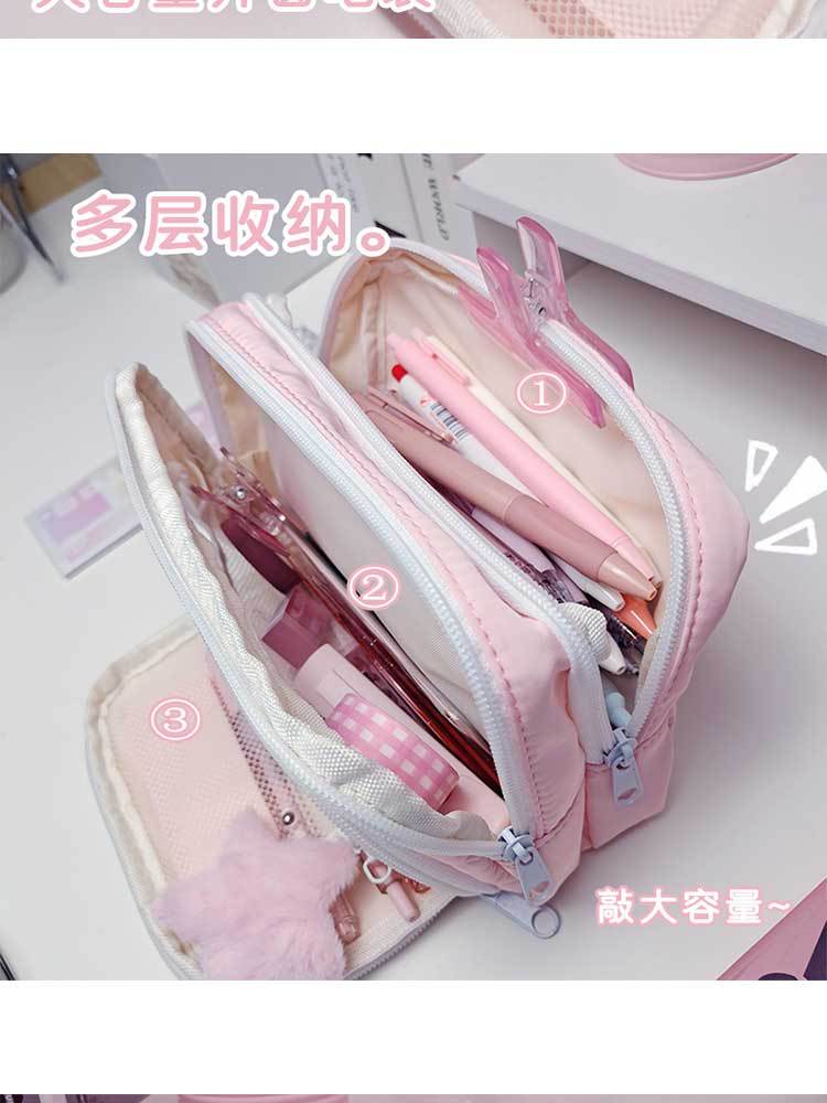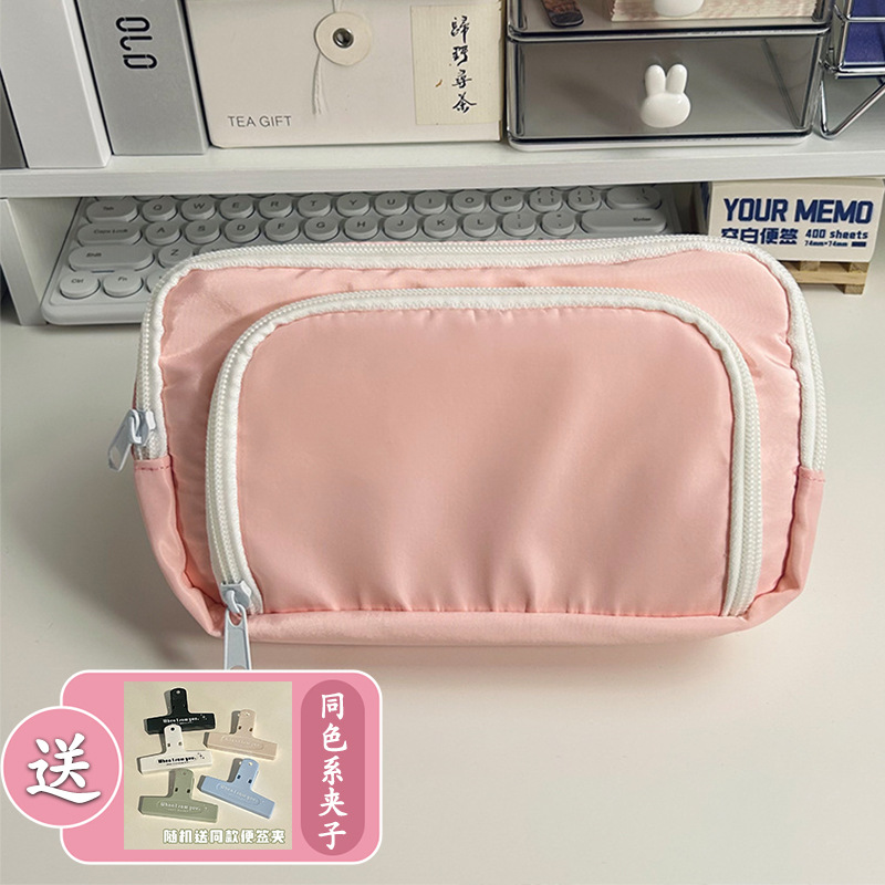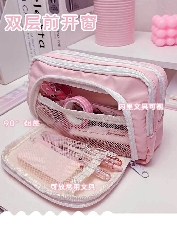 더블 레이어 대용량 문구 상자 간단한 연필 케이스 높은 색상 가치 중학생 고교생을위한 스타일 문구 가방 연필 가방