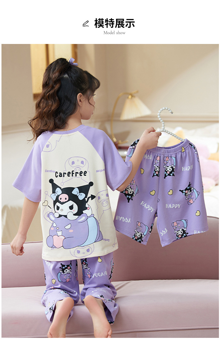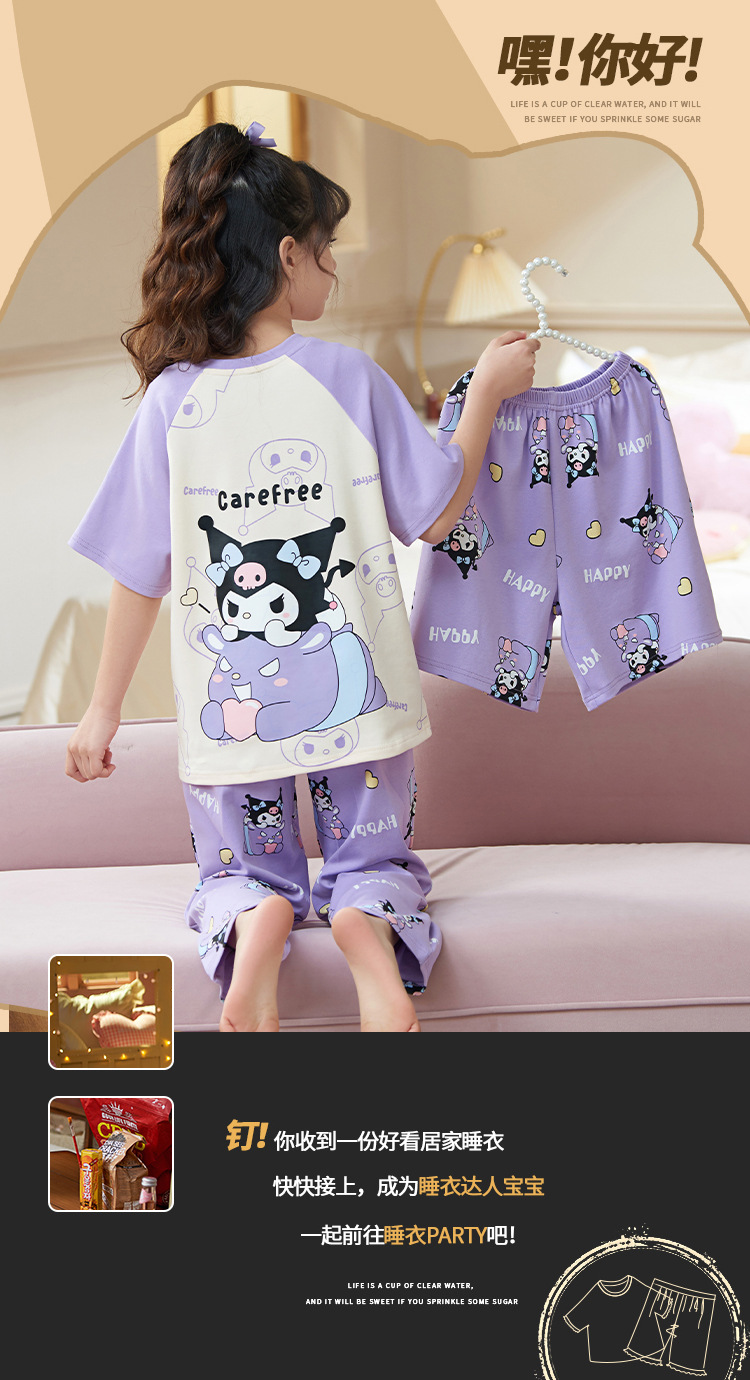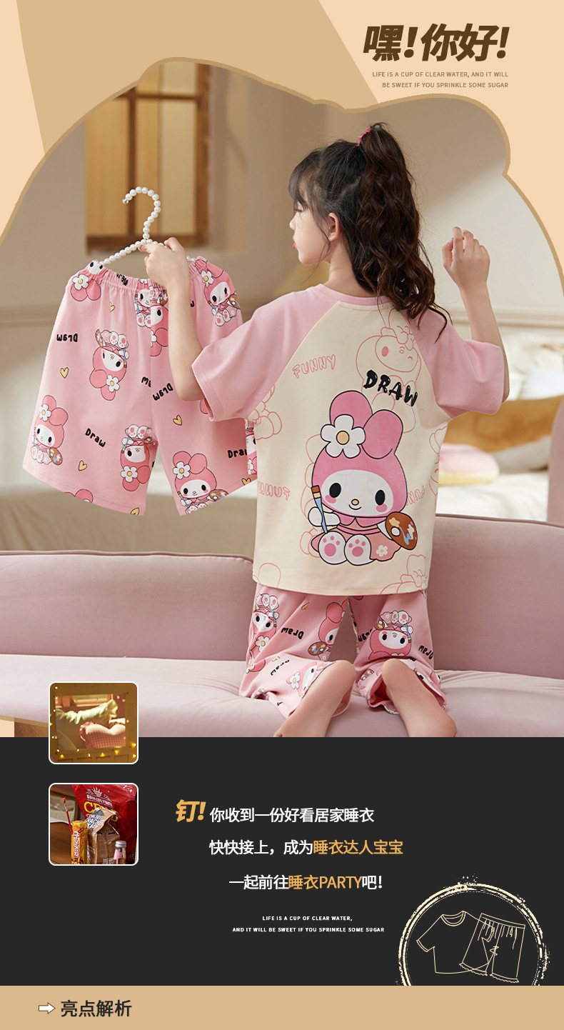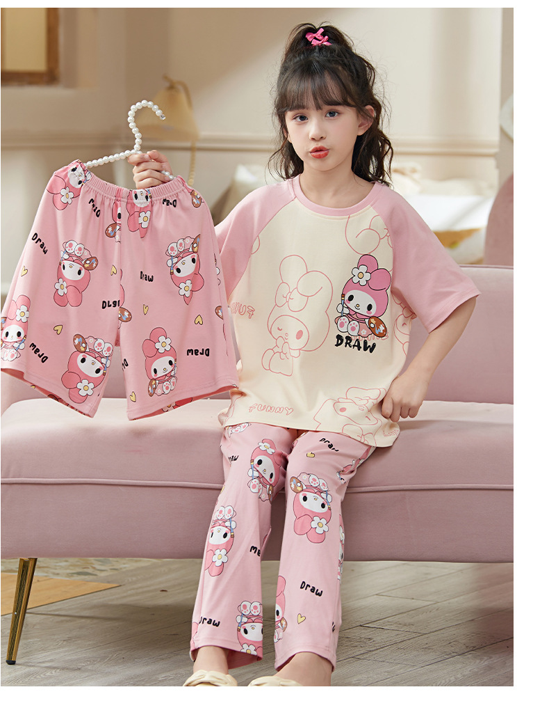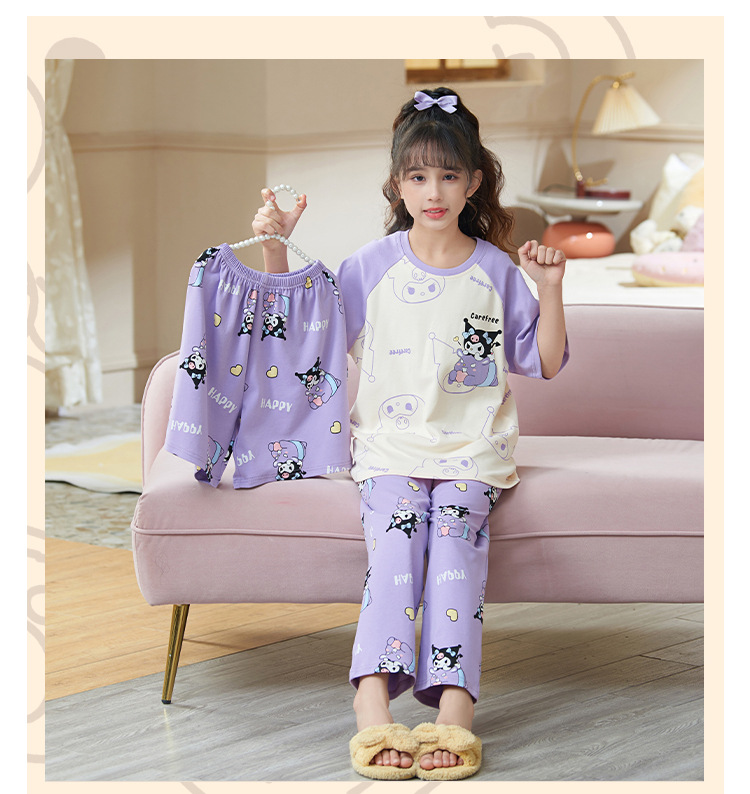 여름 어린이 잠옷 소녀 귀여운 만화 Merleti 공주 소녀 여름 반팔 세 조각 홈 옷
