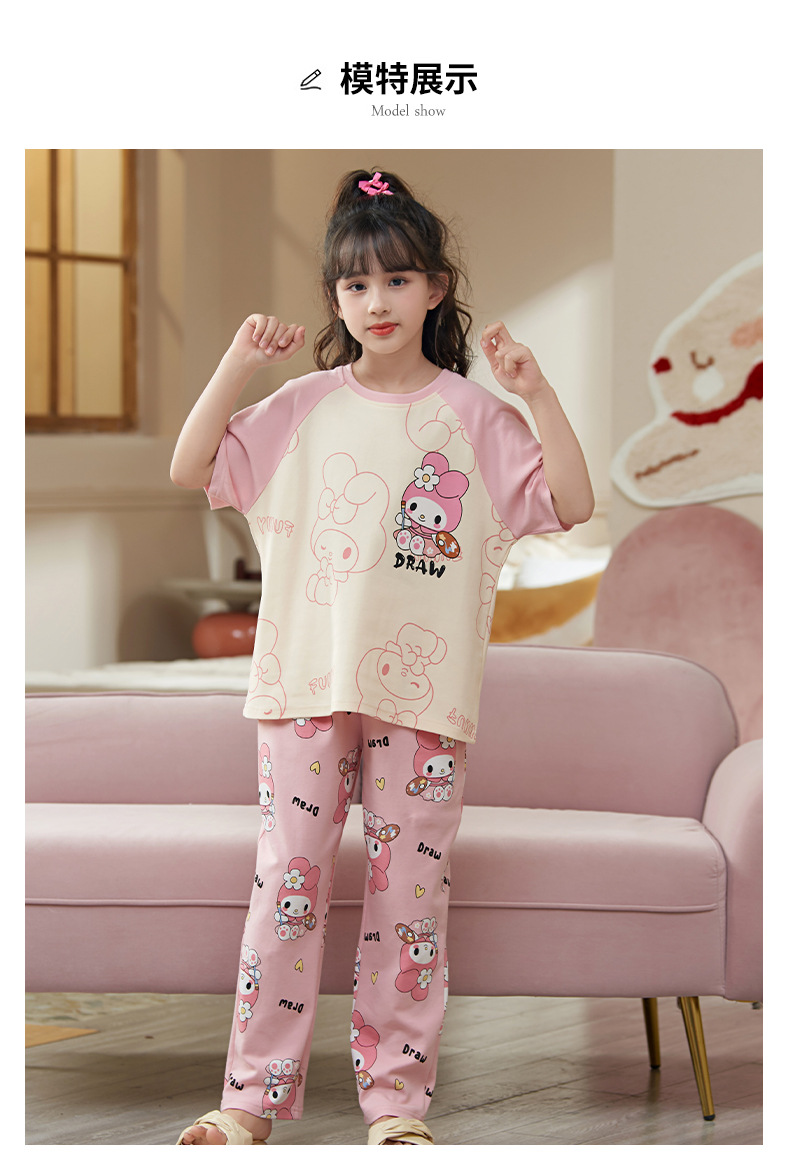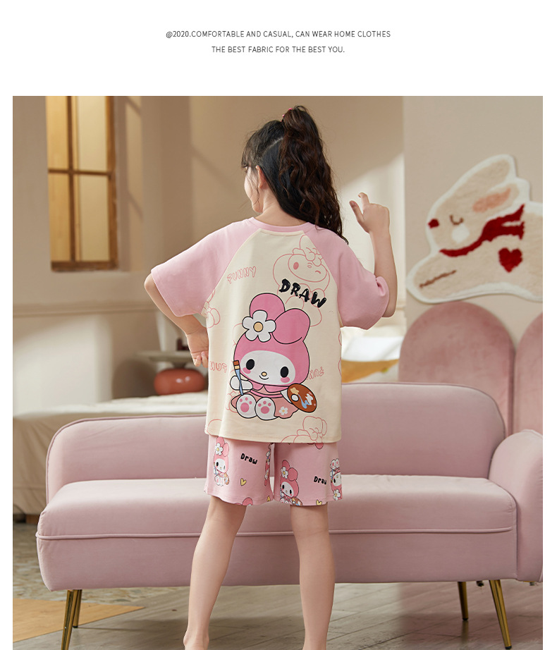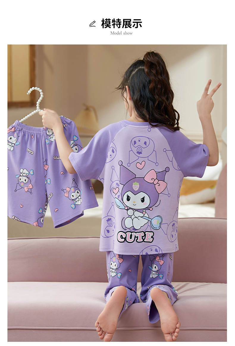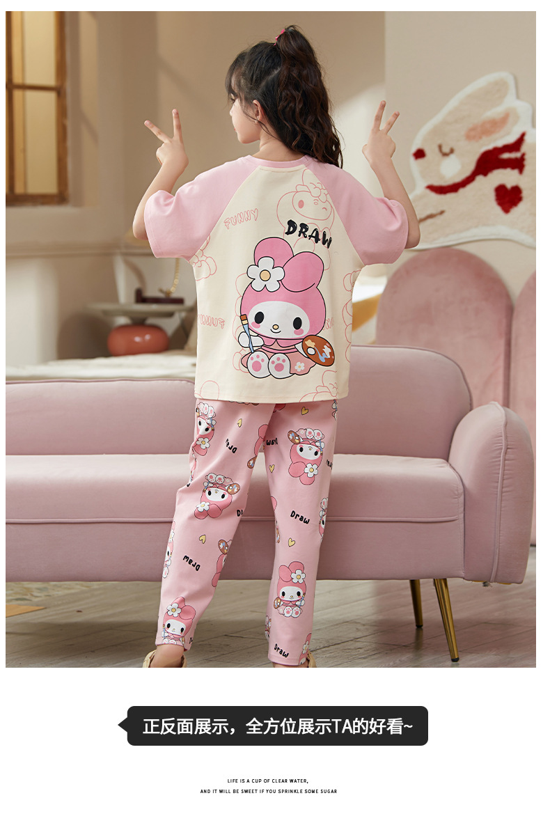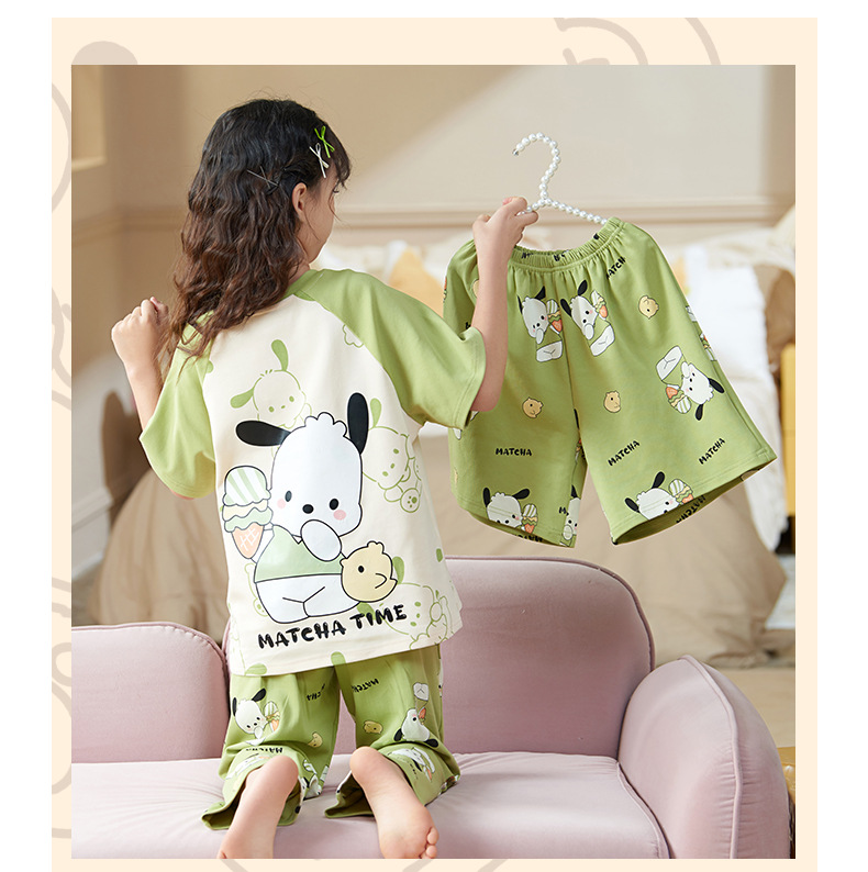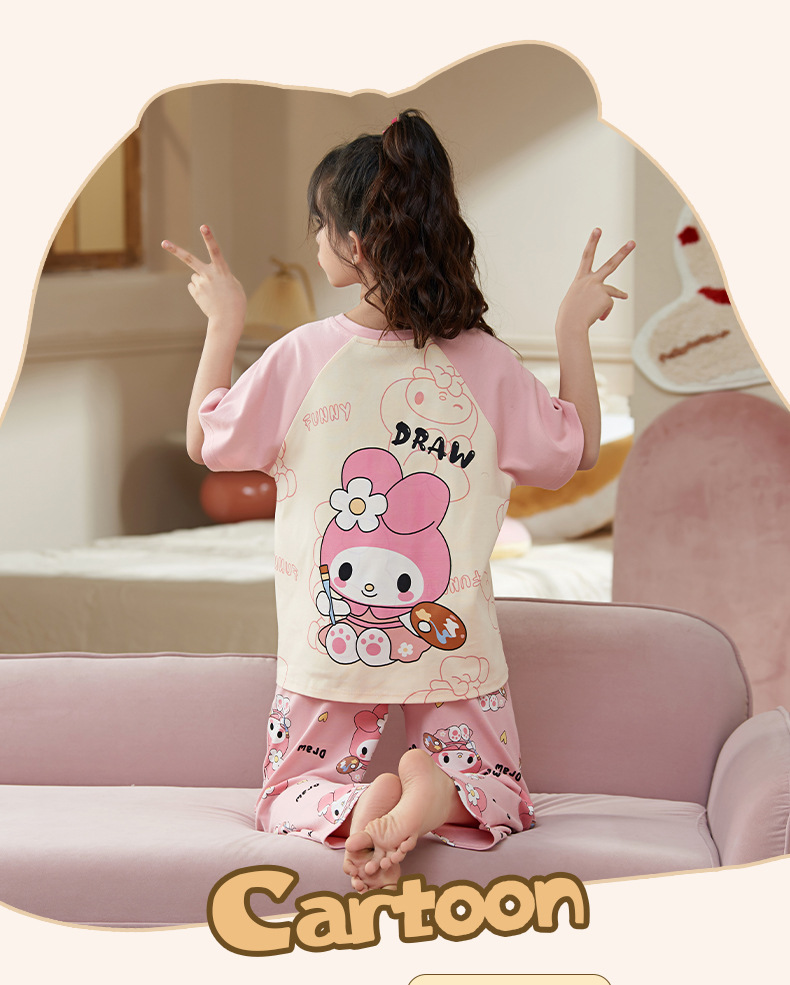 여름 어린이 잠옷 소녀 귀여운 만화 Merleti 공주 소녀 여름 반팔 세 조각 홈 옷