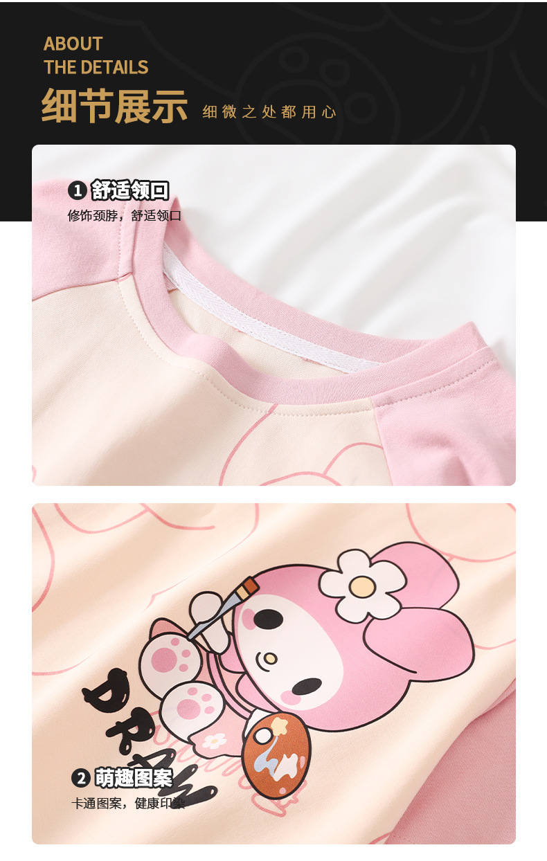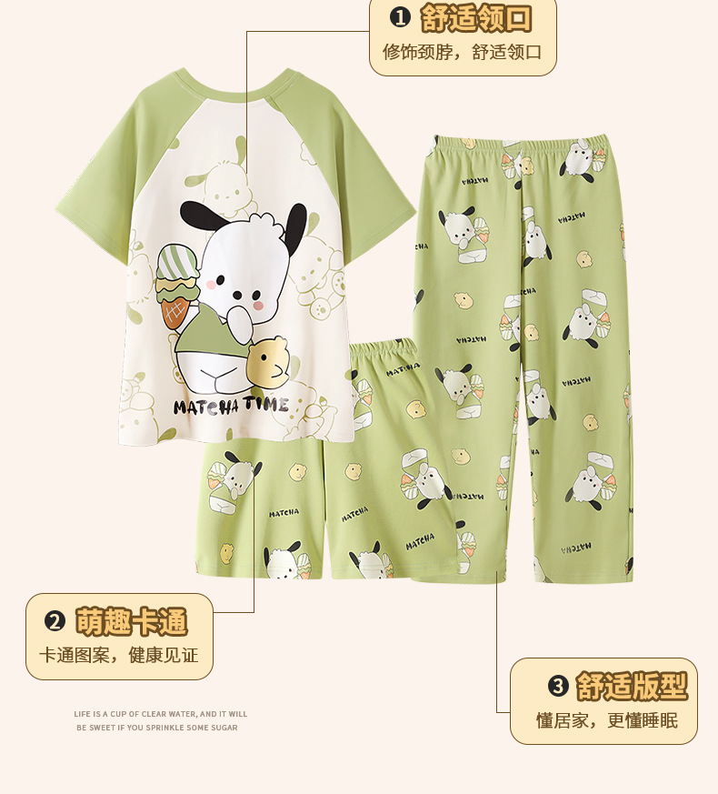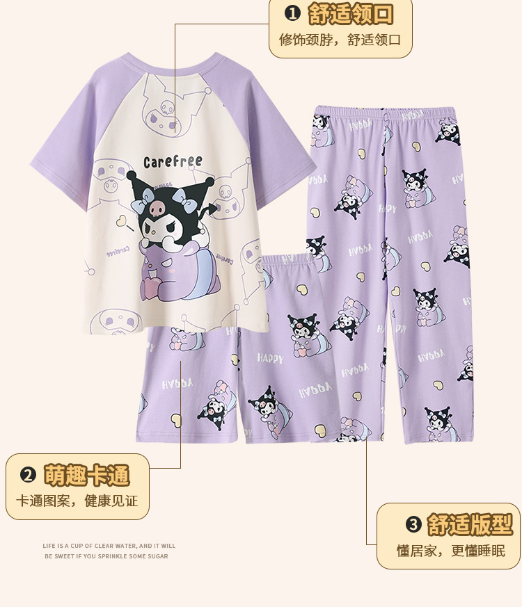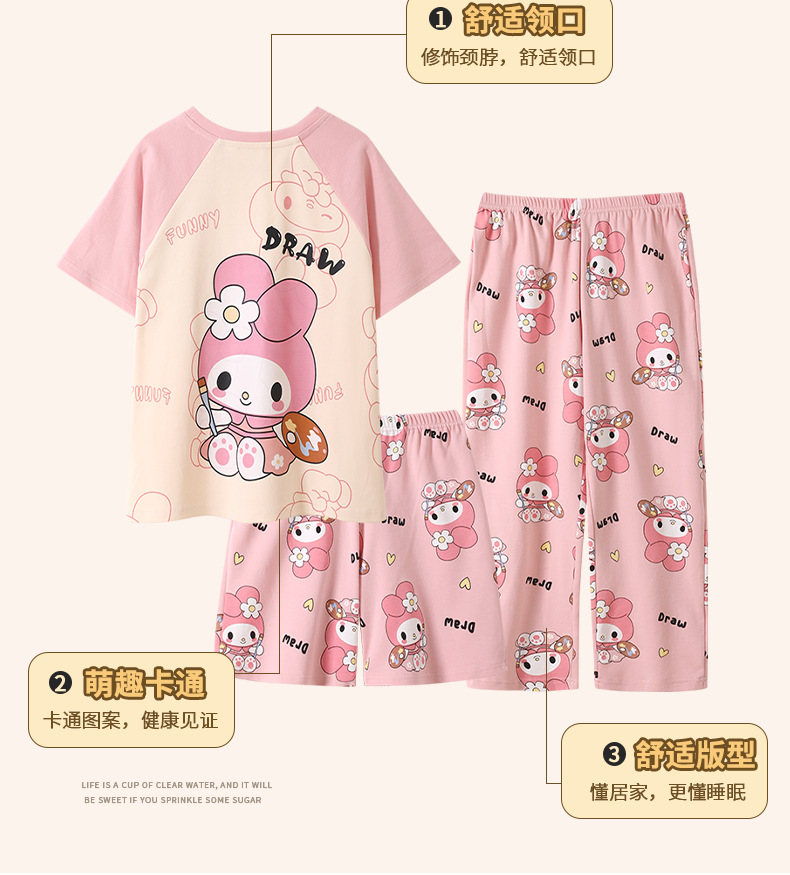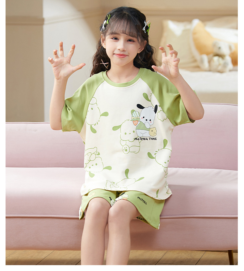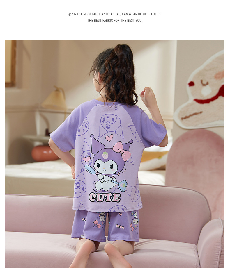 여름 어린이 잠옷 소녀 귀여운 만화 Merleti 공주 소녀 여름 반팔 세 조각 홈 옷