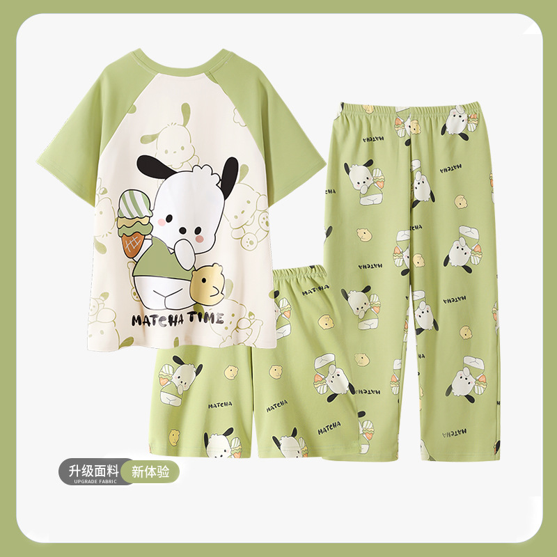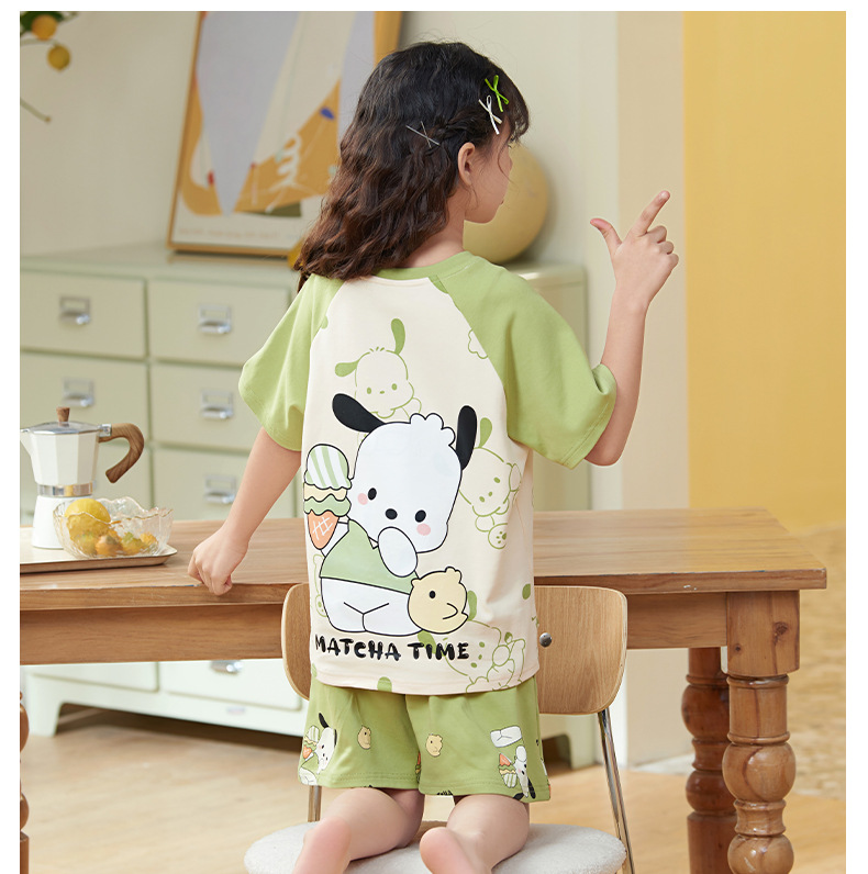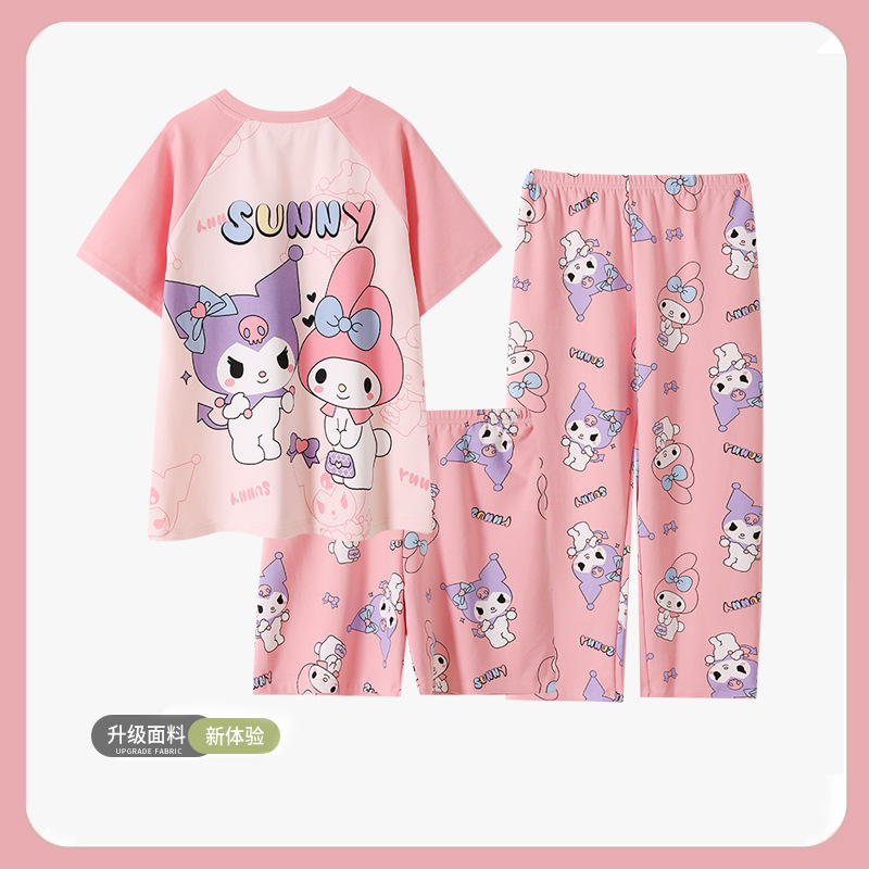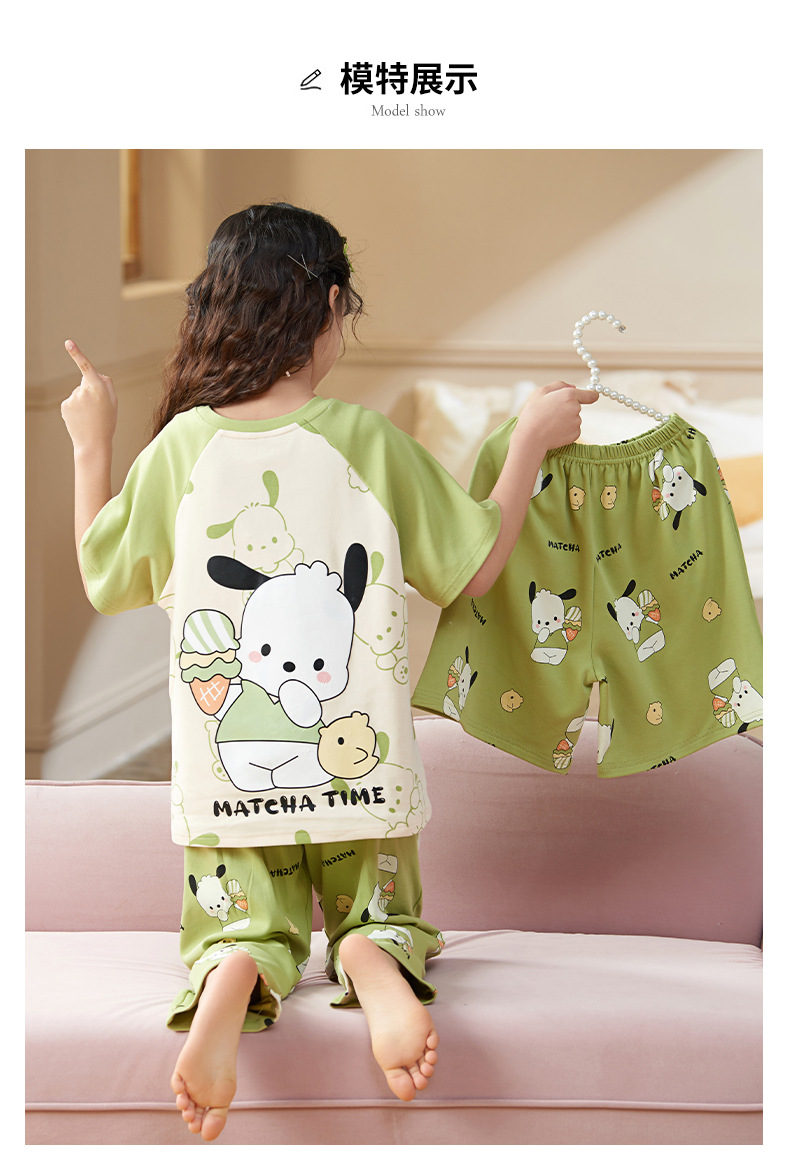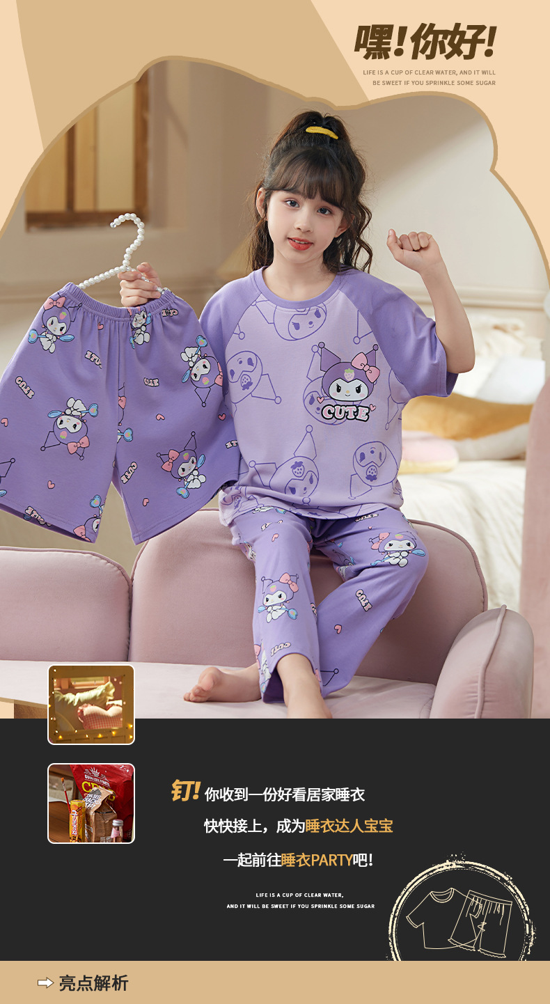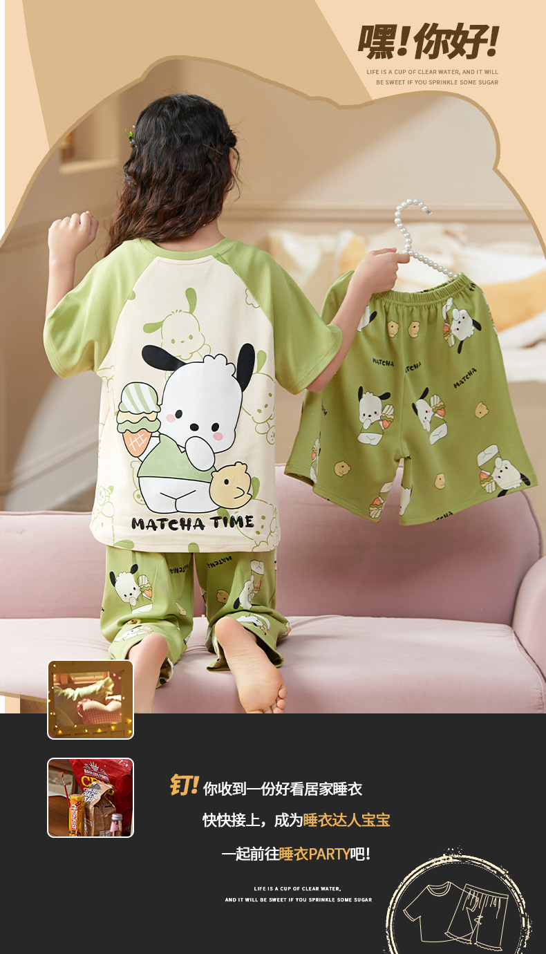여름 어린이 잠옷 소녀 귀여운 만화 Merleti 공주 소녀 여름 반팔 세 조각 홈 옷스토어 가기