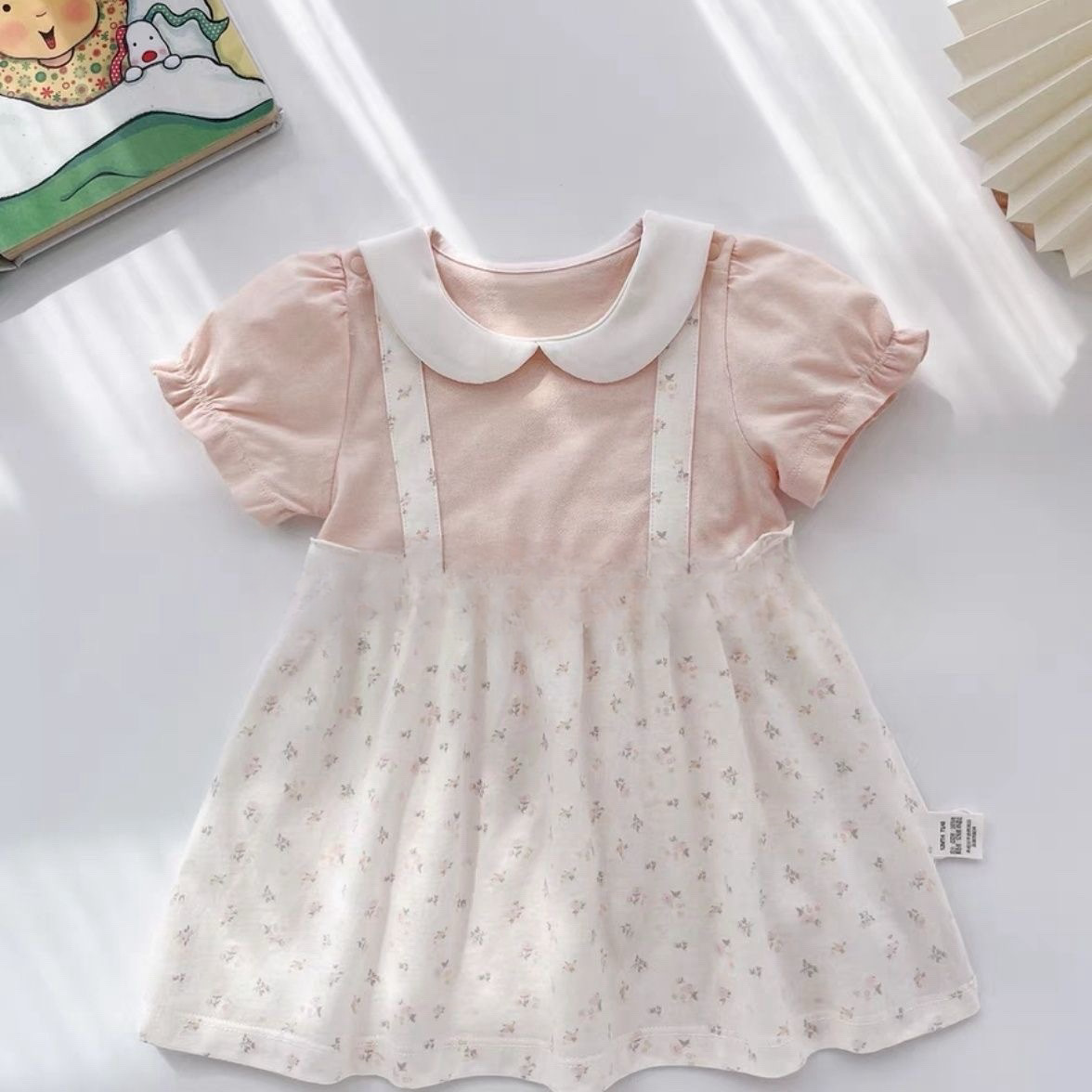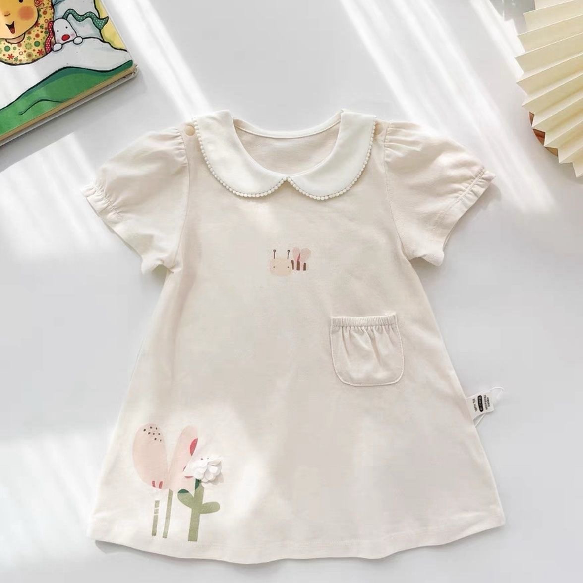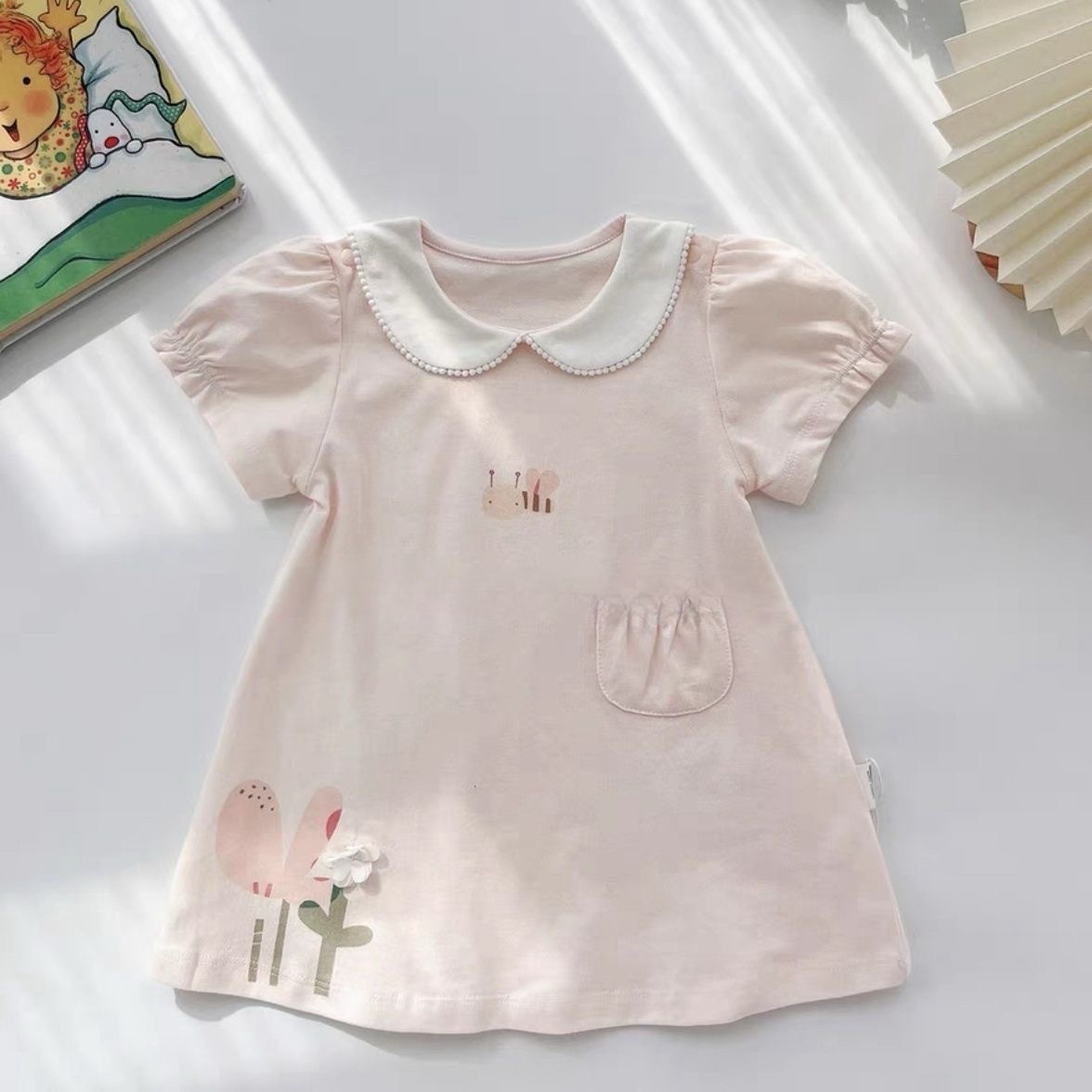 24 여름 반팔 아기 소녀 원피스 코튼 소프트 A 라인 원피스 인형 칼라 레이디 귀여운 대외 무역 헤어스토어 가기