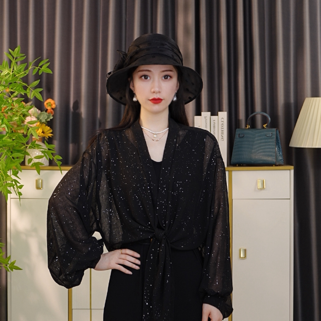 • 넓은 소매-검은 색 (실크 타월 버클 포함)