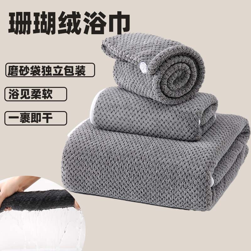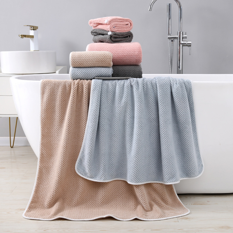 산호 양털 목욕 타월 파인애플 격자 무늬 부드러운 초대형 두꺼운 물 흡수성 성인 커플 어린이 가구 3 피스 세트