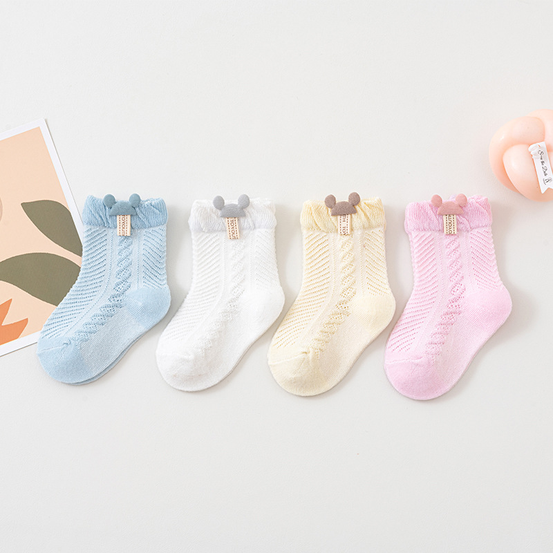 아기 양말 여름용 얇고 통기성 있는 메쉬 양말 신생아 중간 길이 양말 0-6개월 1-3세 메쉬 통기성