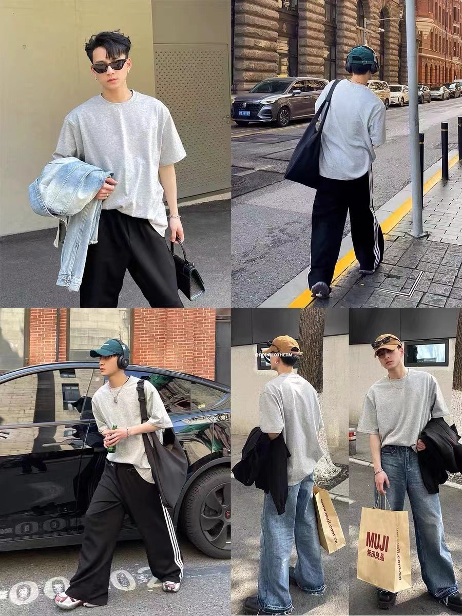 스위트 쿨 짧은 소매 티셔츠 남성용 솔로나 250g 여름 UV 보호 편안한 레저 느슨한 반소매스토어 가기