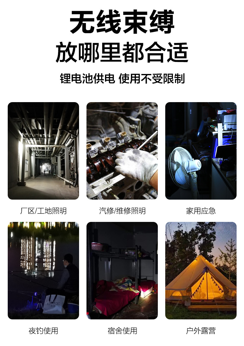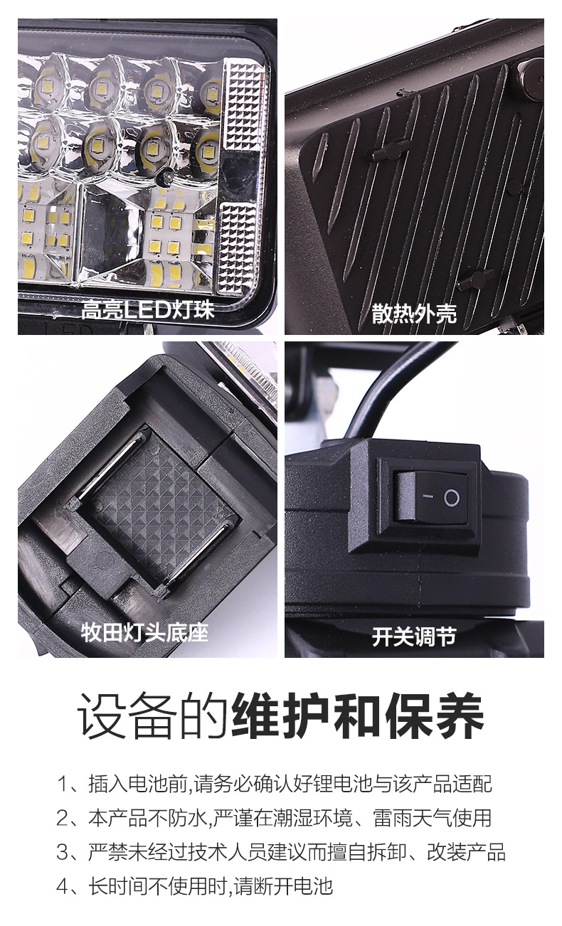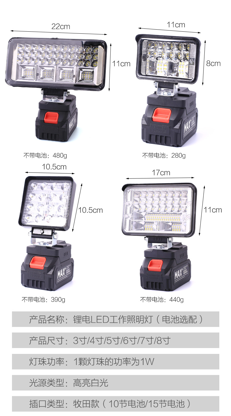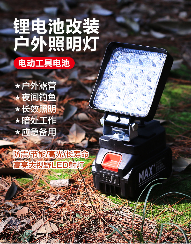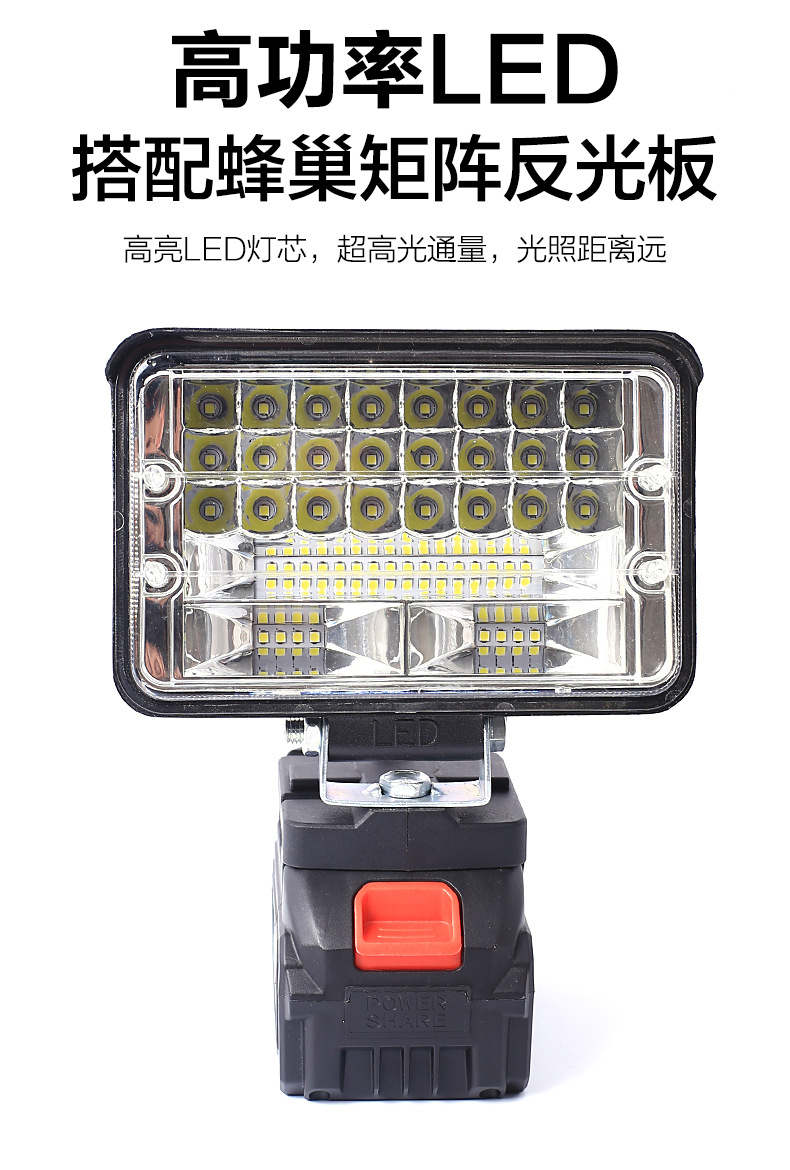 작업 빛 리튬 배터리 조명 낚시 빛 건설 현장 야외 강한 빛 LED 빛 전기 마키타 도구 비상 조명
