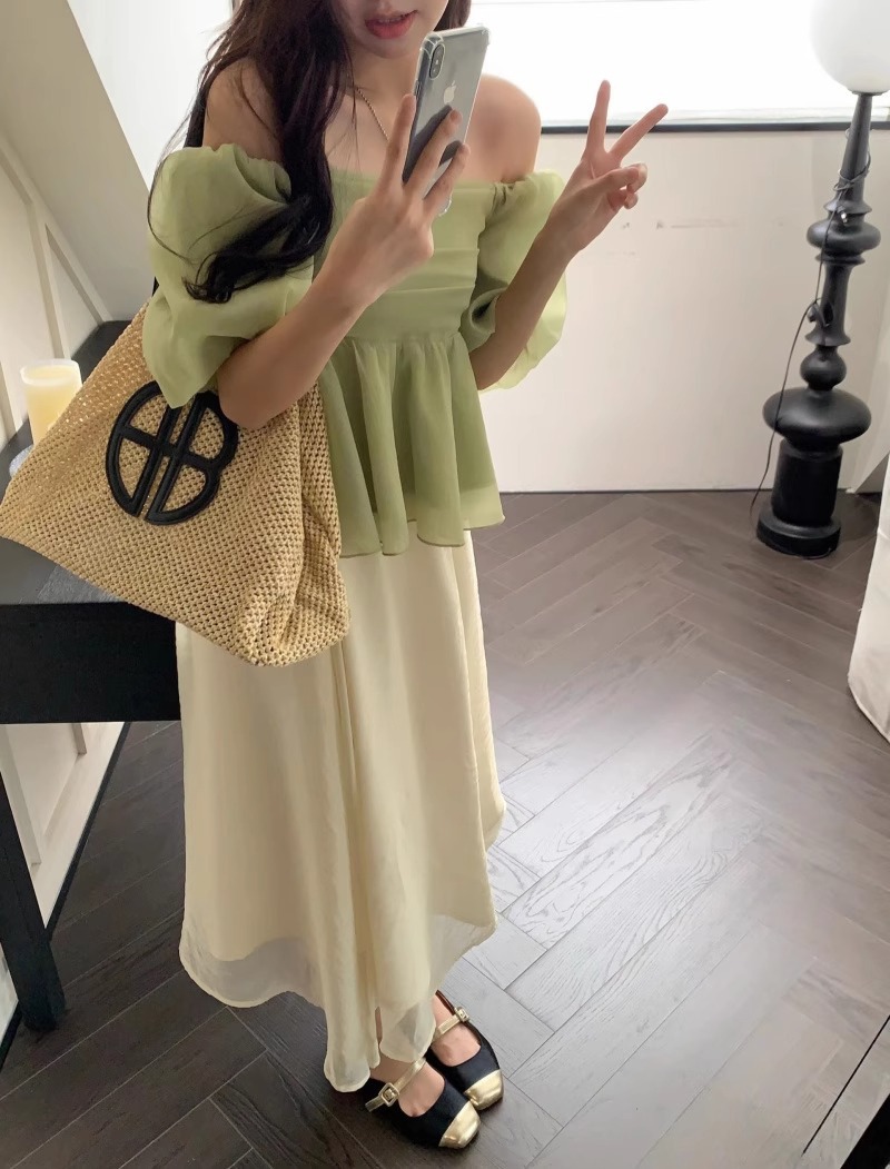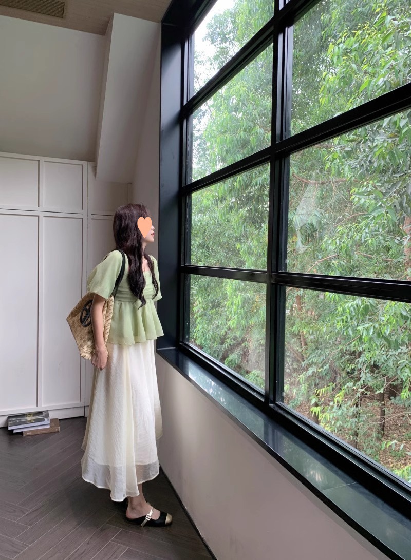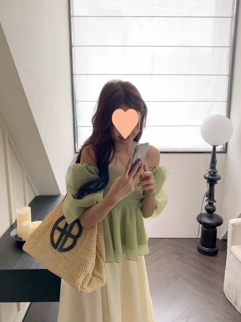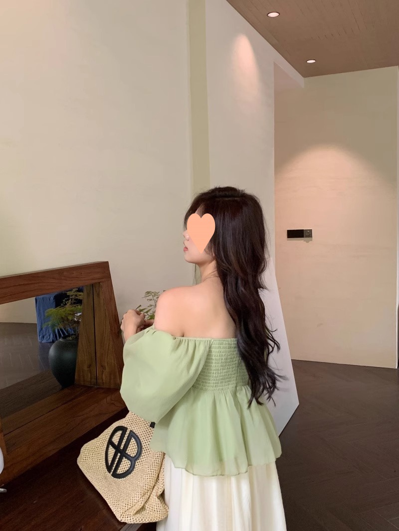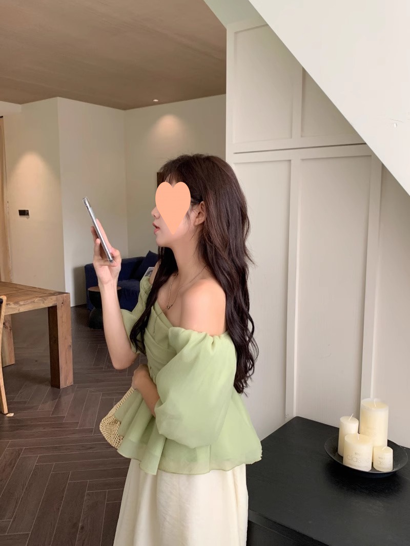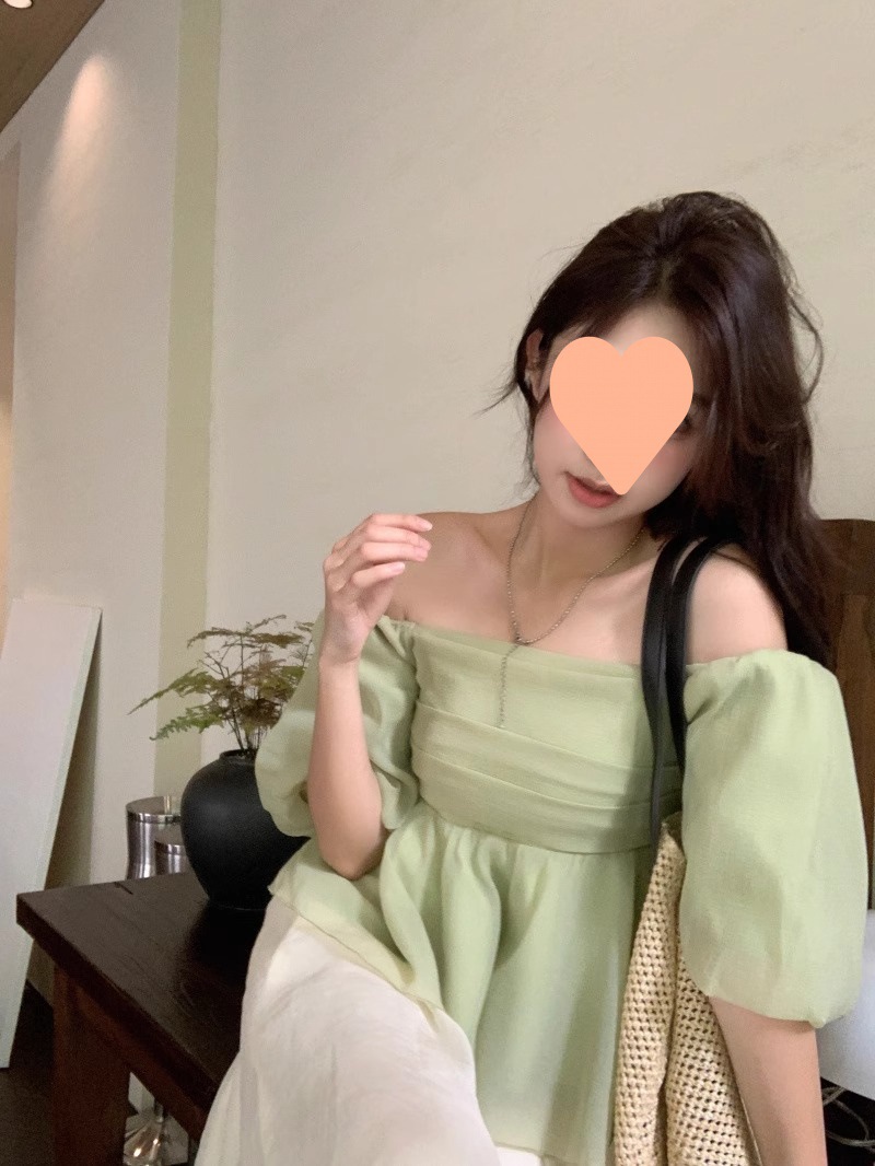 달콤한 스퀘어 칼라 살구색 쉬폰 셔츠 여성 여름 랩 가슴 주름 퍼프 슬리브 탑 웨이스트 슬림 핏 쇼트베이스 셔츠스토어 가기