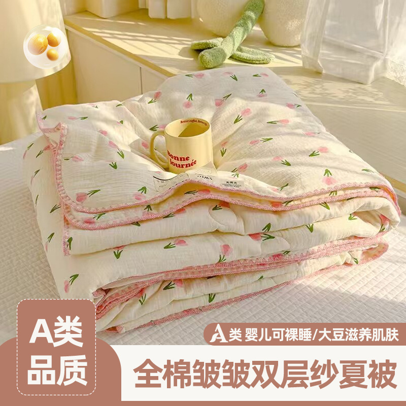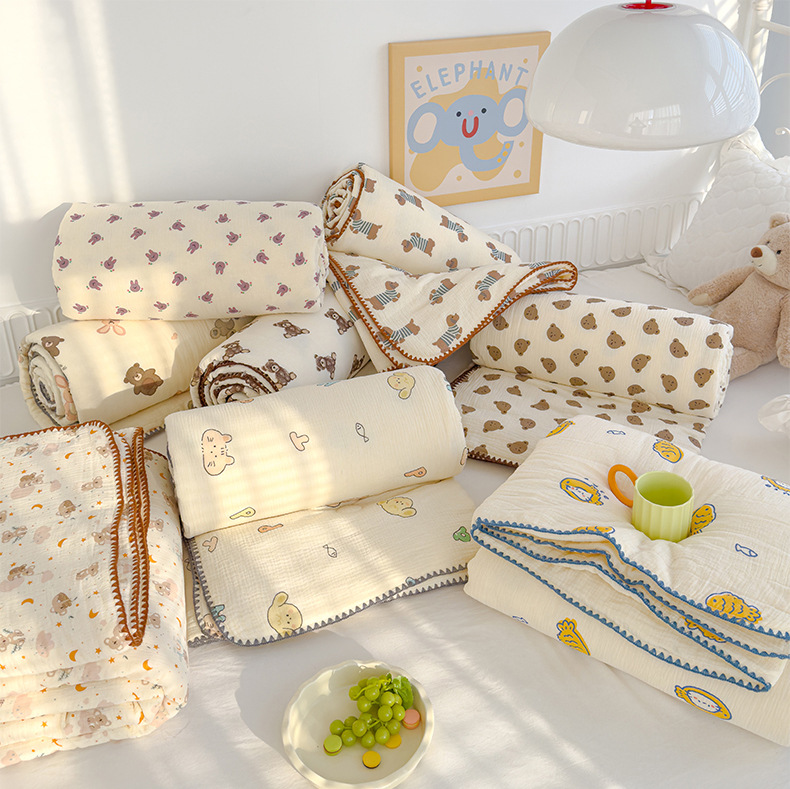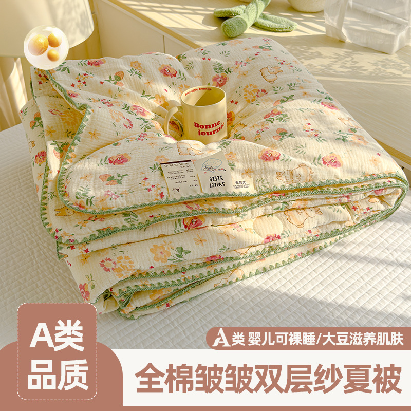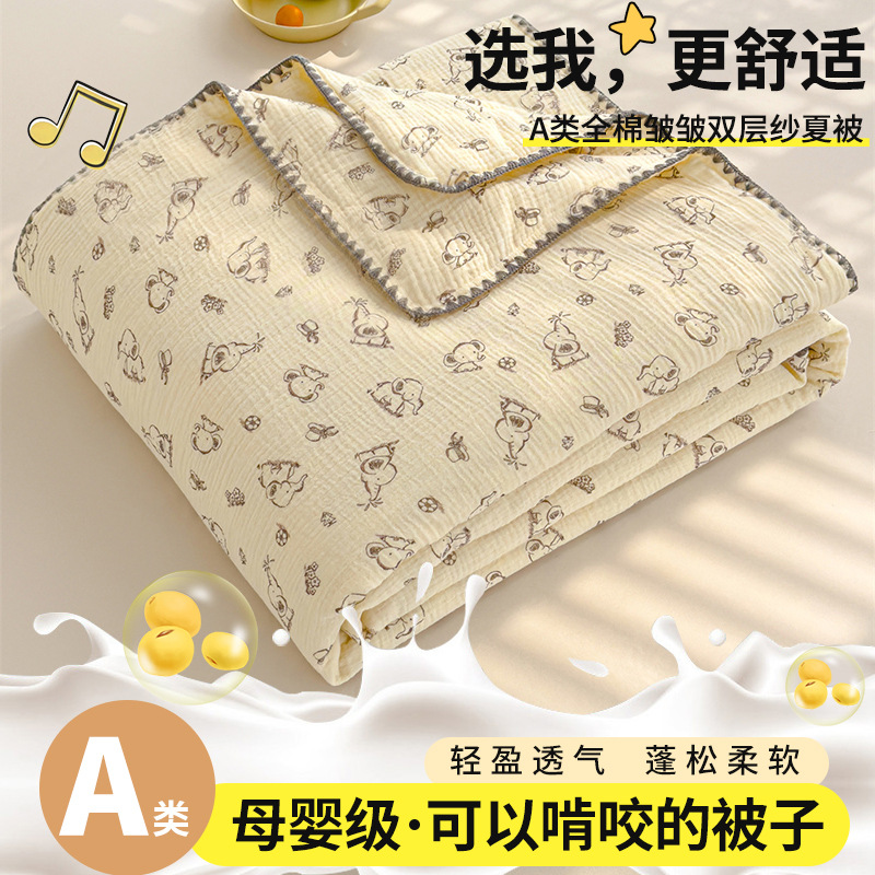 여름 올 코튼 여름 이불 클래스 모성 및 유아 등급 주름 원사 에어컨 이불 만화 더블 원사 어린이 세탁 가능한 여름 이불
