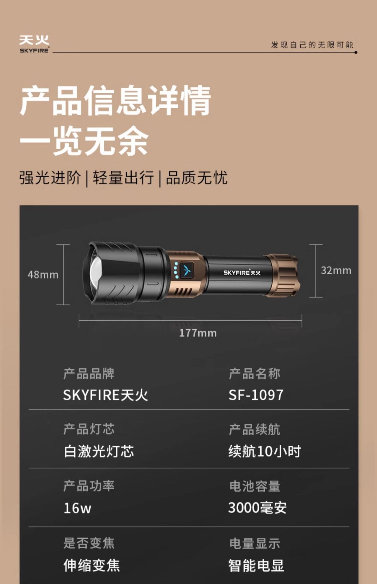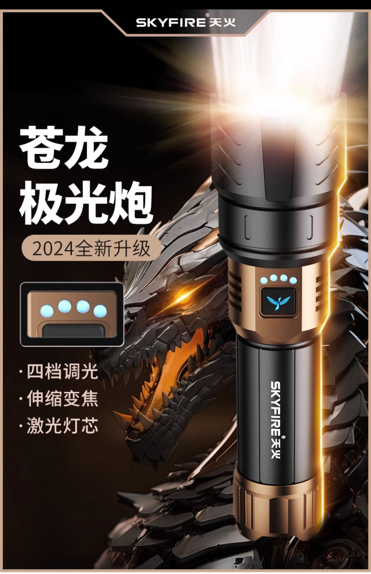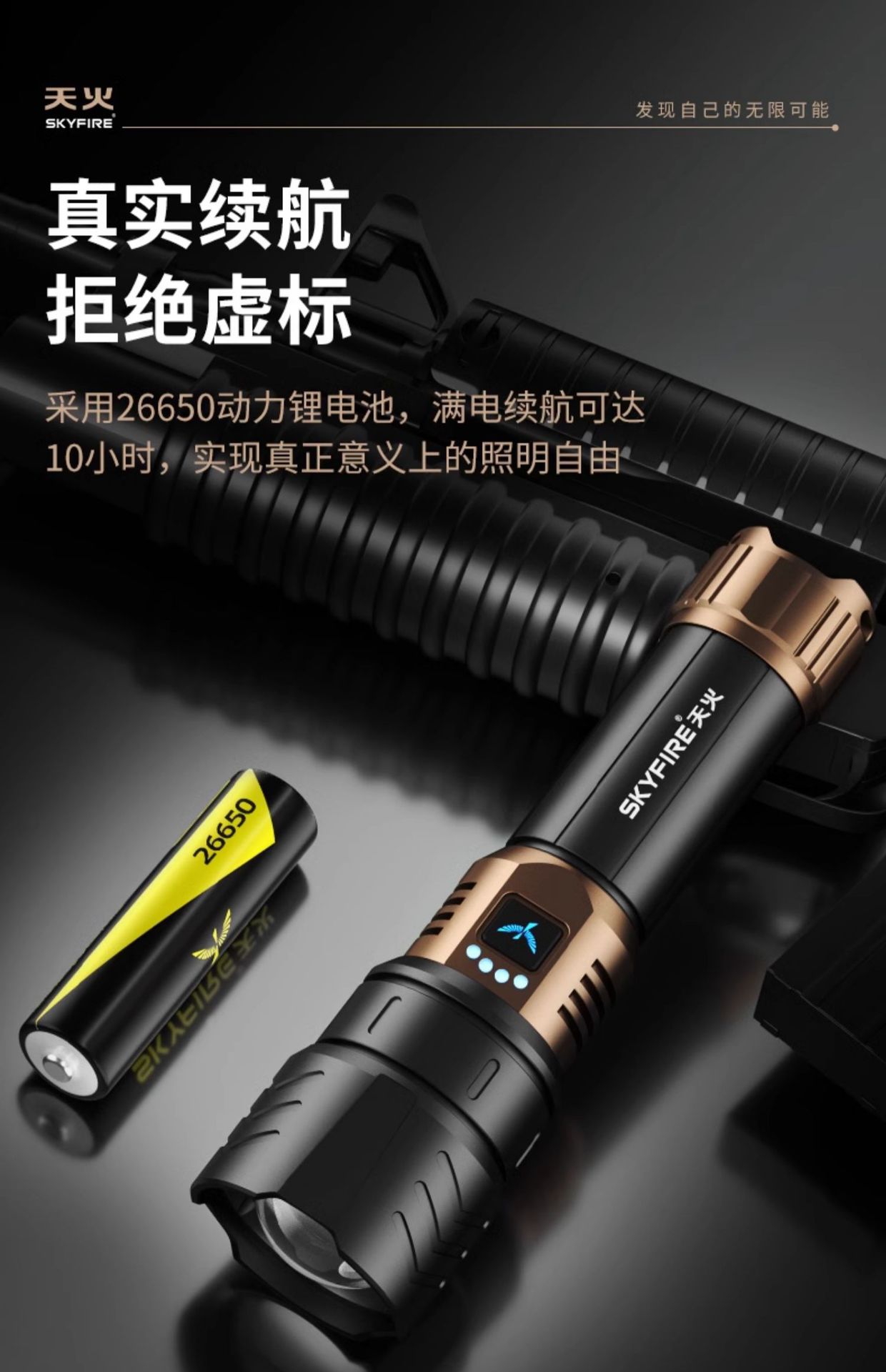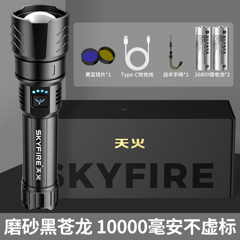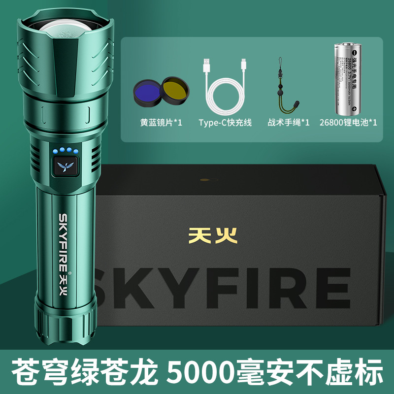 Skyfire Canglong 강한 빛 손전등 슈퍼 밝은 레이저 야외 스포트라이트 레이저 순찰 장거리 매우 긴 배터리 수명 블랙스토어 가기
