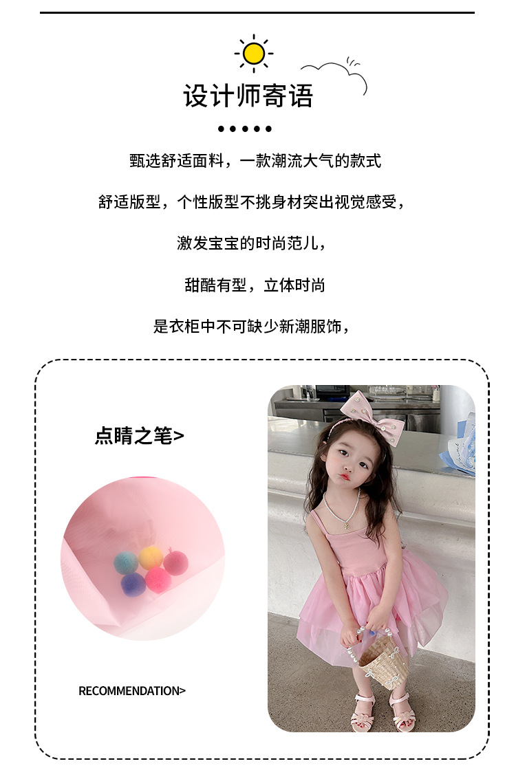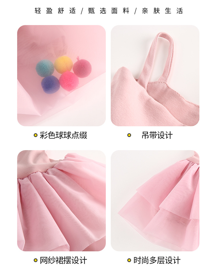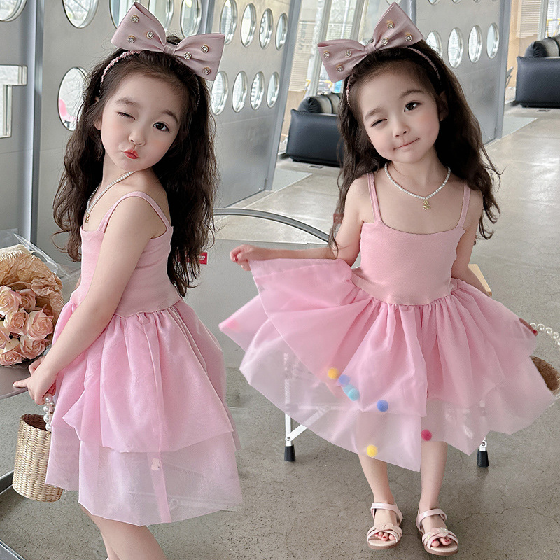 어린이 소녀 여름 새로운 2024 귀여운 달콤한 공주 스타일 컬러 볼 슬링 원사 스커트 원피스 대외 무역스토어 가기