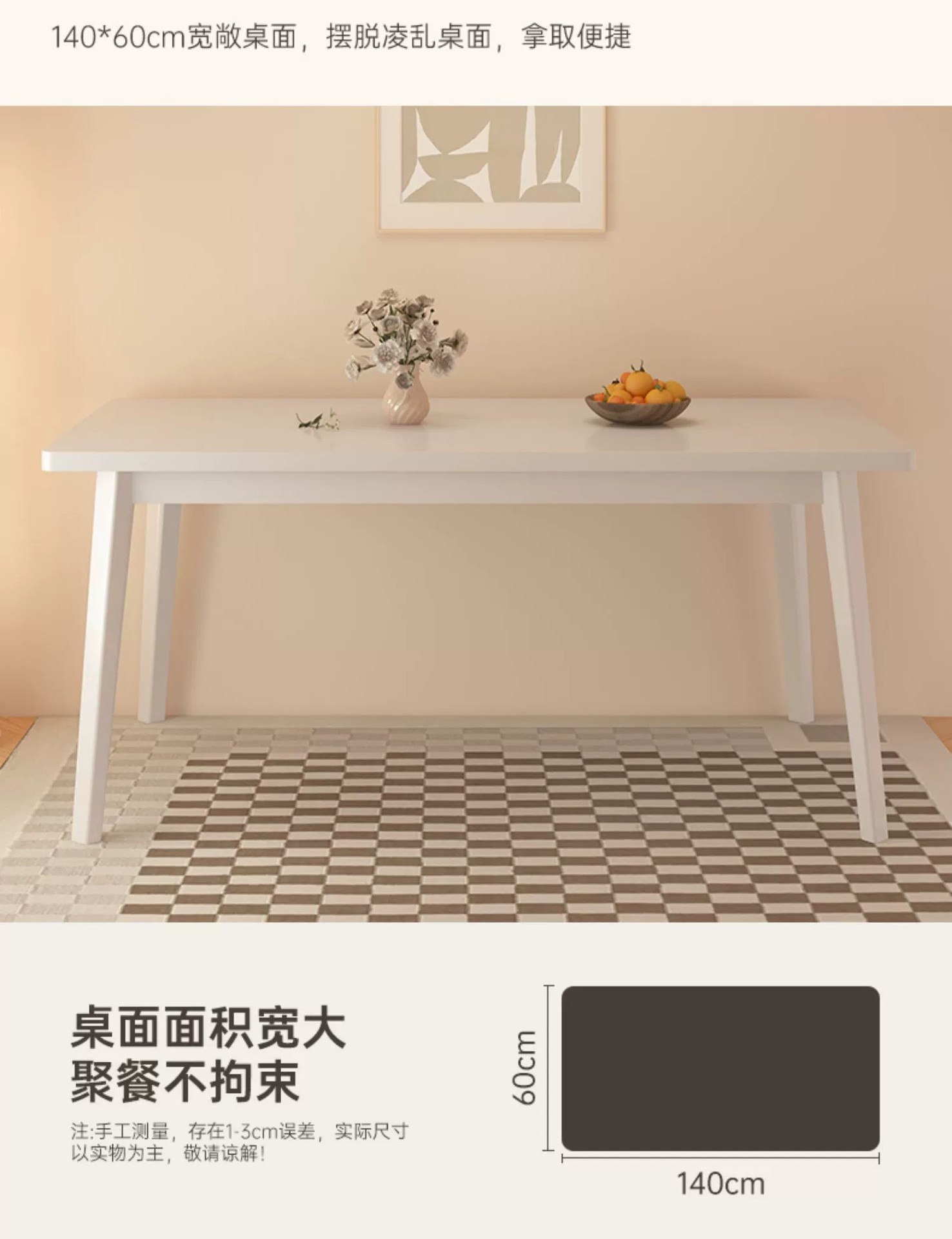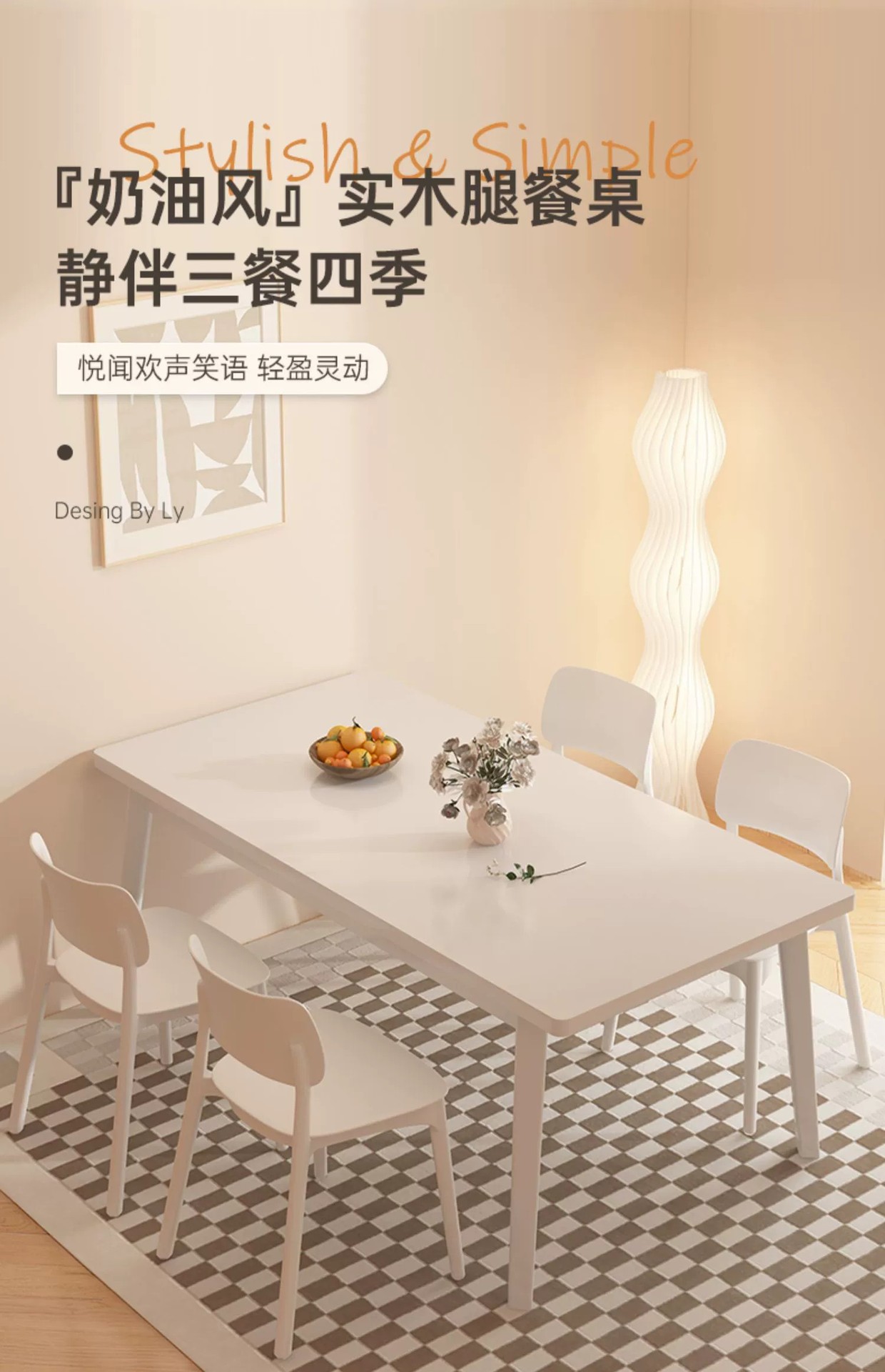 단단한 나무 다리 식탁 가정용 작은 아파트 흰색 쌀 테이블 간단한 크림 스타일 직사각형 거실 식탁 및 의자 조합스토어 가기