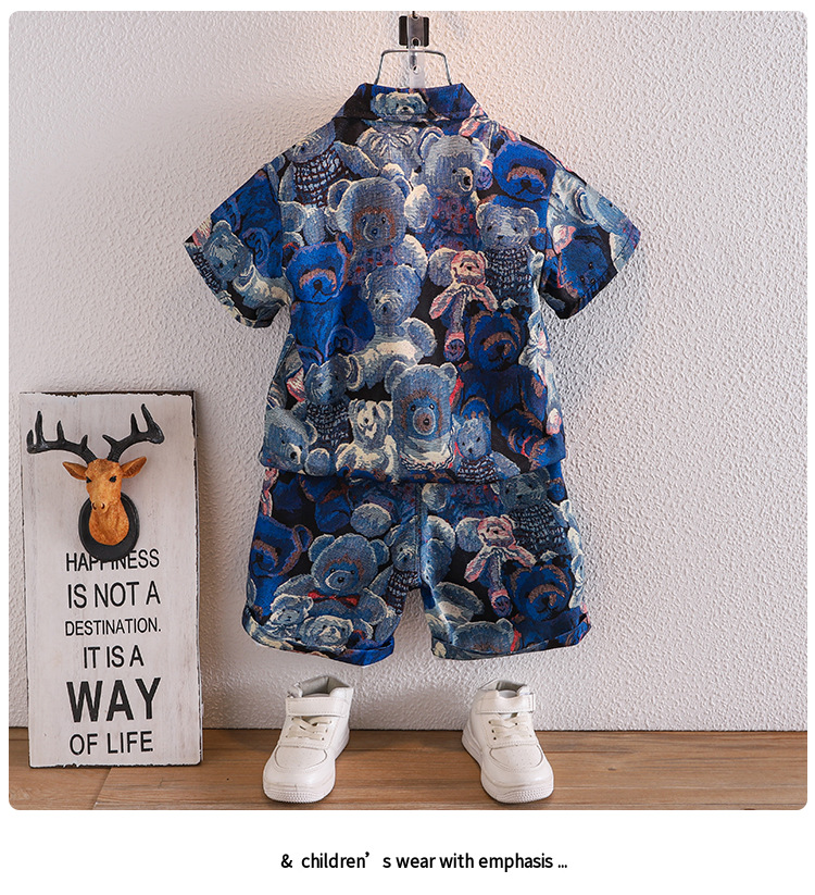 소년 여름 세트 2024 새로운 유행 아기 여름 반팔 옷 어린이 멋진 투피스 카우보이 세트스토어 가기