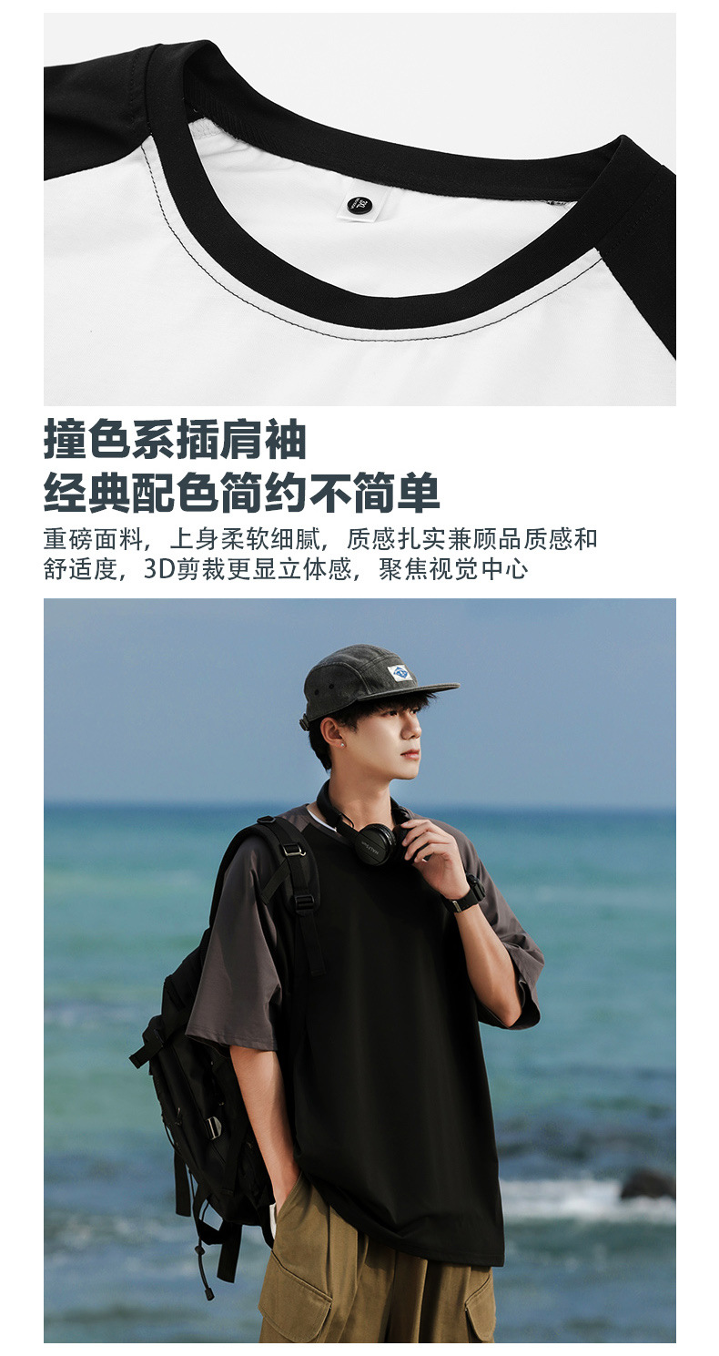 여름 트렌디 한 홍콩 스타일 남성 컬러 블록 라운드 넥 반팔 티셔츠 지방 남성 플러스 사이즈 대형 루즈 단색 티셔츠스토어 가기