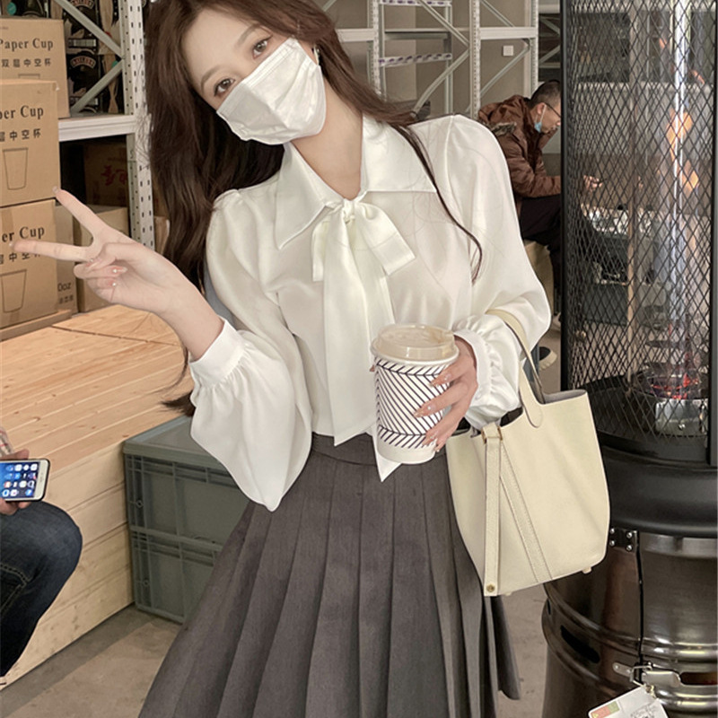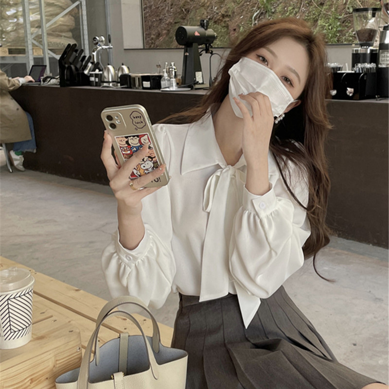 국경 간 공장 유럽과 미국의 활 셔츠 여성의 봄과 가을 긴 소매 흰 셔츠 느슨한 떨림의 한국 버전 Taobao스토어 가기