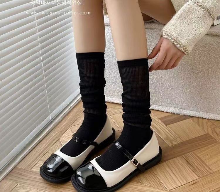 양말 맞춤형 흰색 종아리 양말 여성 여름 얇은 양말 로리타 스타킹 ins 일본식 달콤한 바스토어 가기