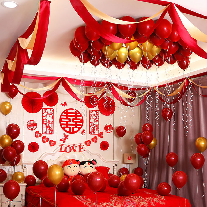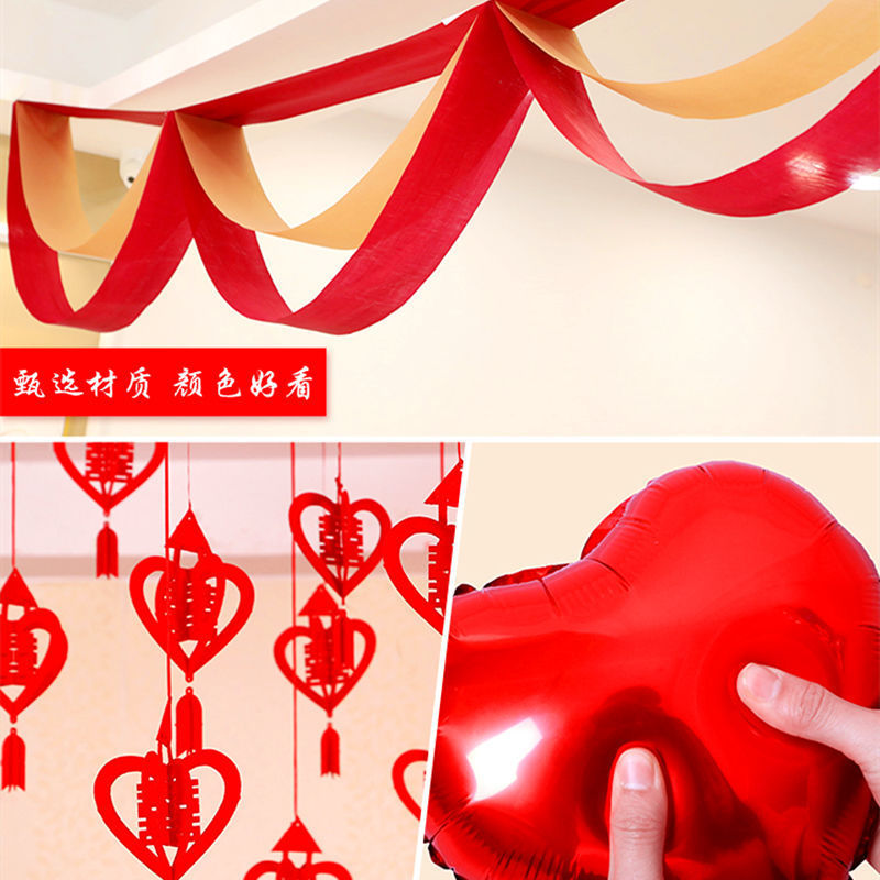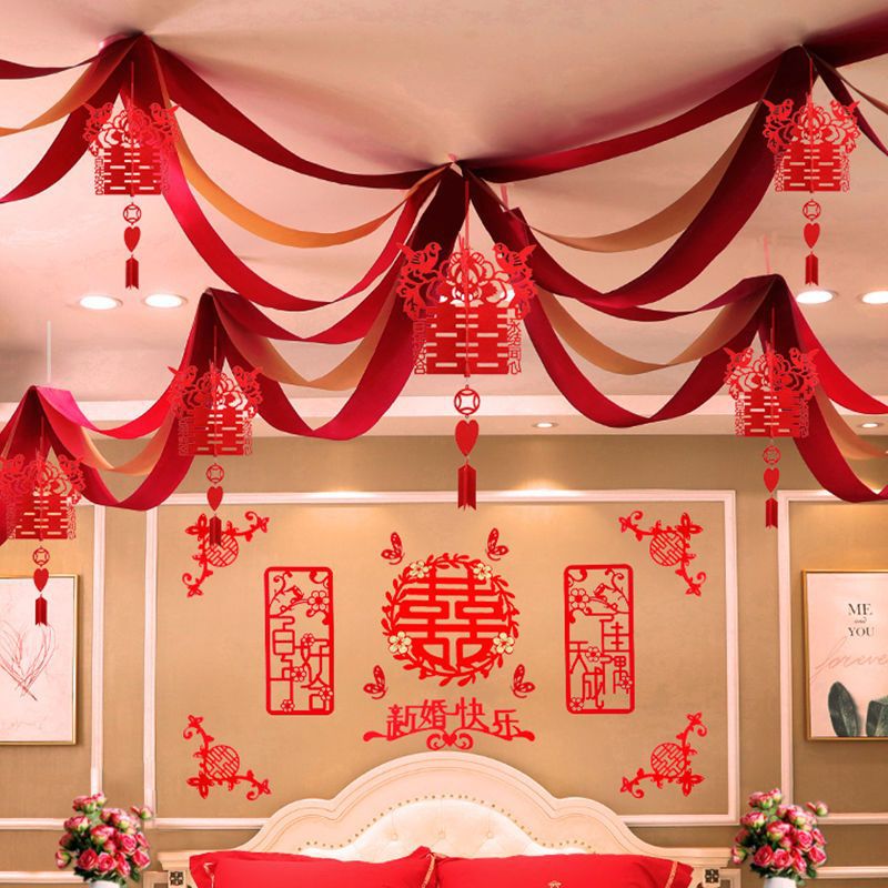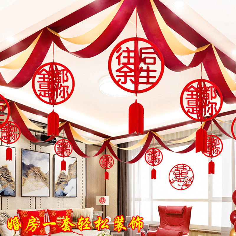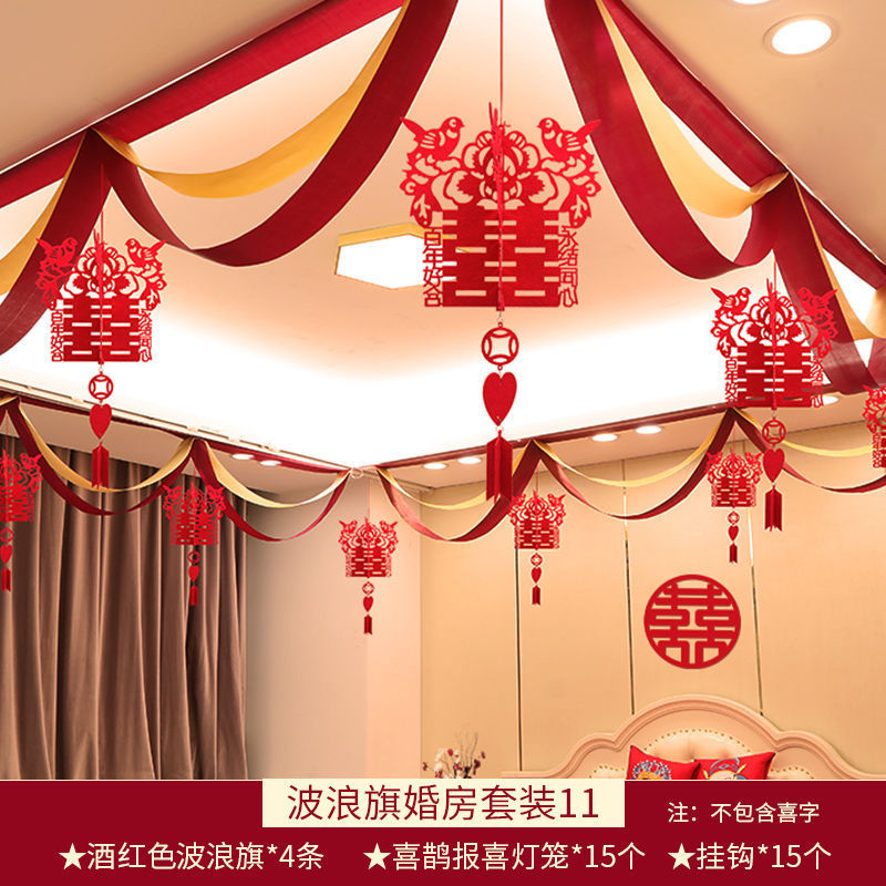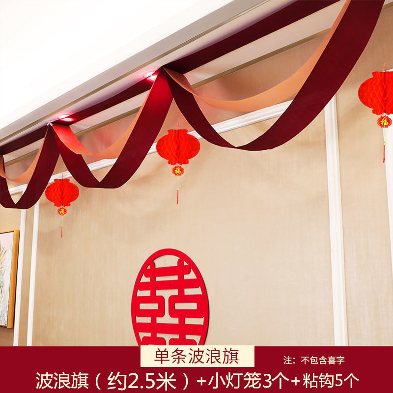 웨딩 룸 장식 새 집 거실 용품 Xi Zi 라화 웨딩 침실 컬러 벨트 웨이브 플래그 세트
