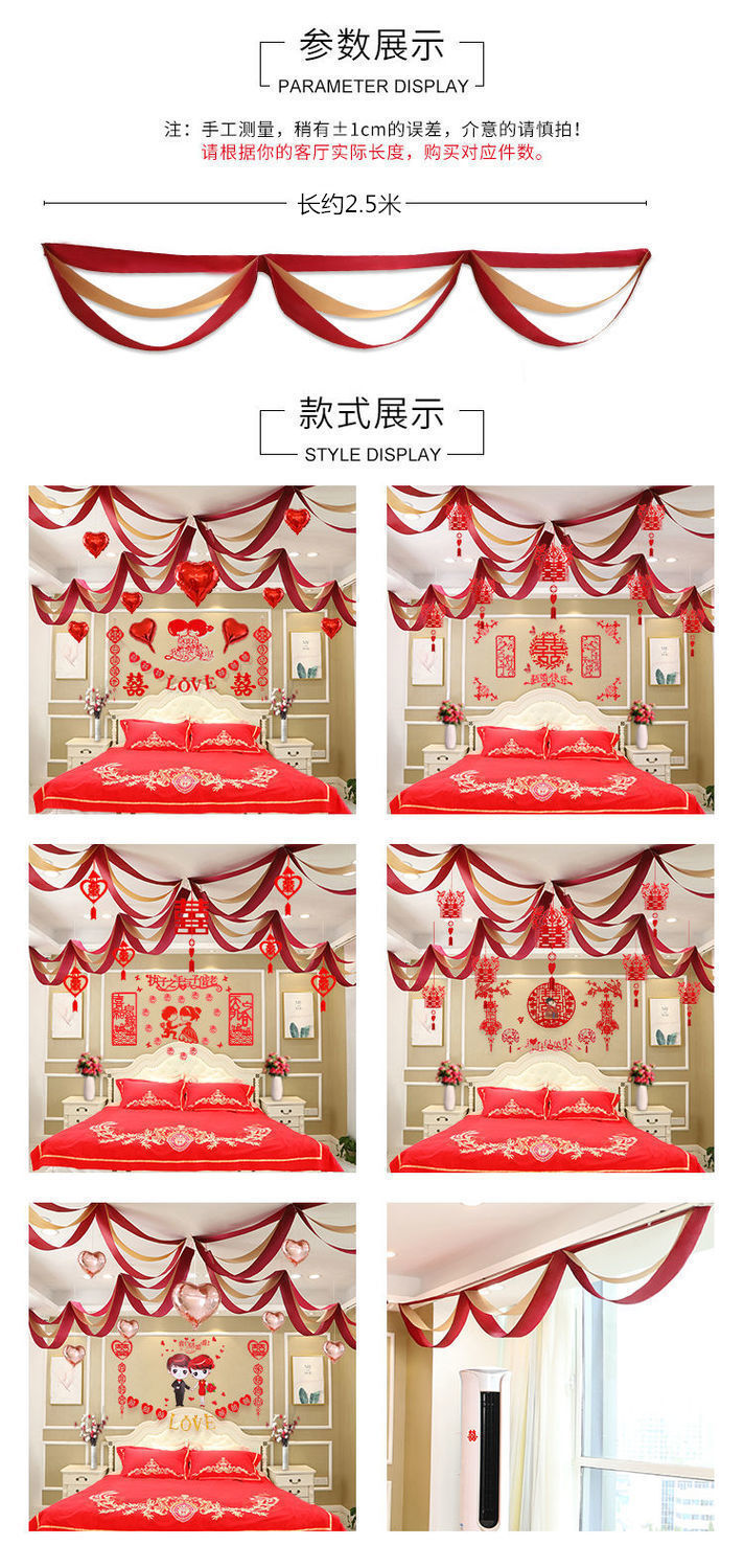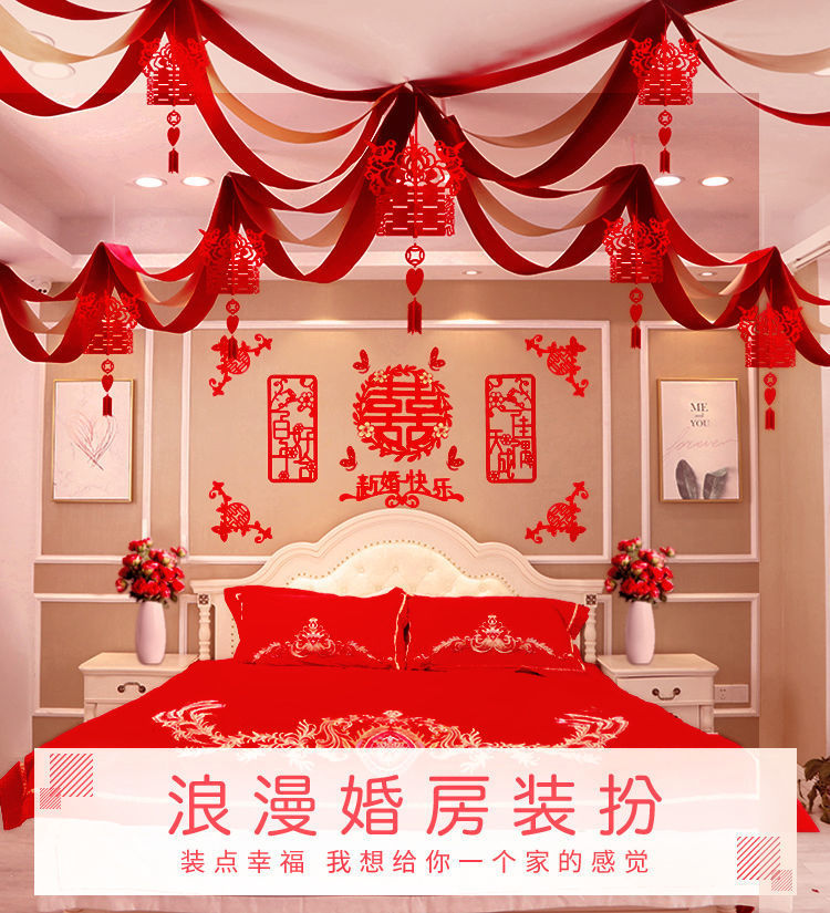 웨딩 룸 장식 새 집 거실 용품 Xi Zi 라화 웨딩 침실 컬러 벨트 웨이브 플래그 세트스토어 가기
