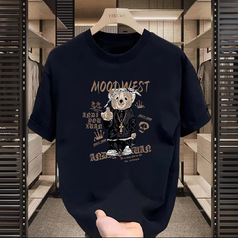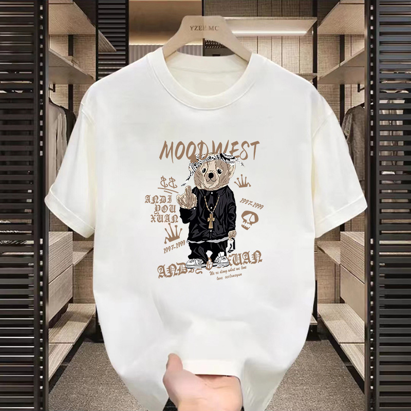 공장 도매 여름 미국 패션 포커 인쇄 패턴 절반 소매 조커 느슨한 둥근 목 짧은 소매스토어 가기