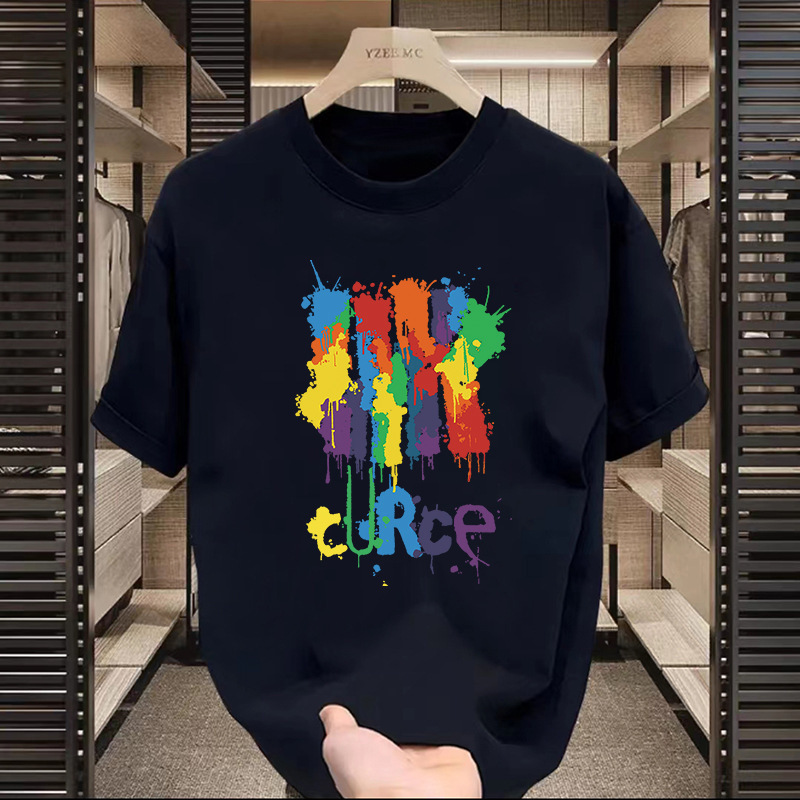 공장 도매 여름 미국 패션 포커 인쇄 패턴 절반 소매 조커 느슨한 둥근 목 짧은 소매