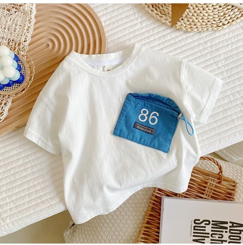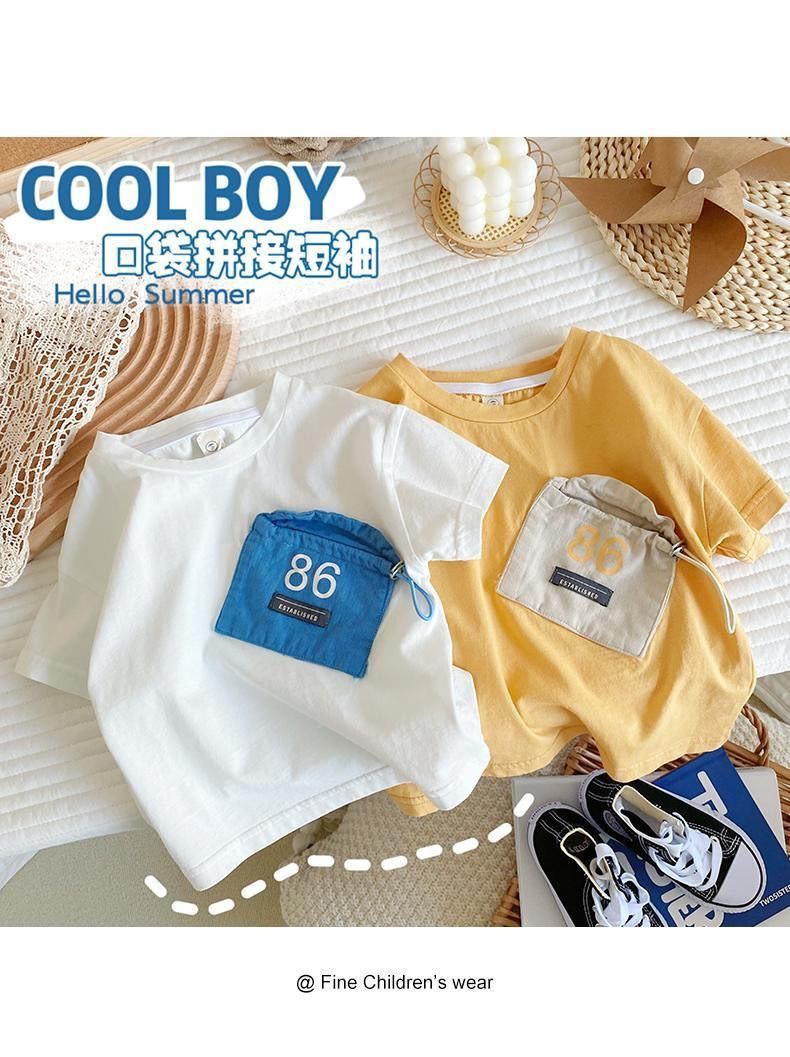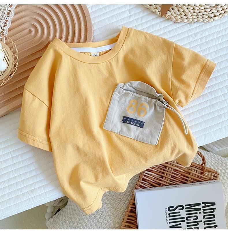 뉴 보이즈 반팔 트렌디 티셔츠 코튼 베이비 솔리드 컬러 티셔츠 어린이 여름 만화 아동복 남성용 여름 반소매 탑스토어 가기