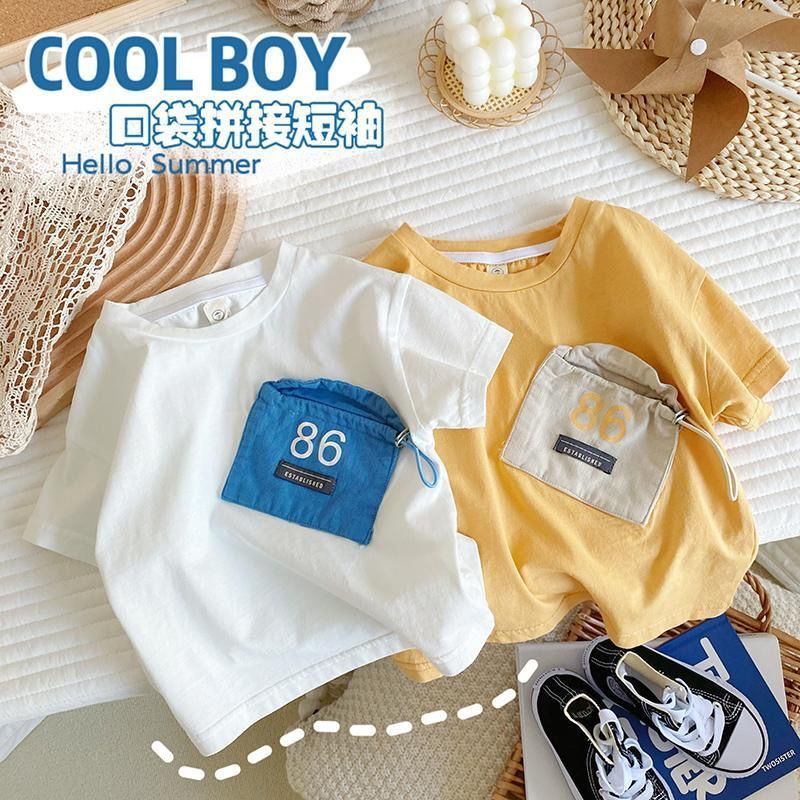 뉴 보이즈 반팔 트렌디 티셔츠 코튼 베이비 솔리드 컬러 티셔츠 어린이 여름 만화 아동복 남성용 여름 반소매 탑