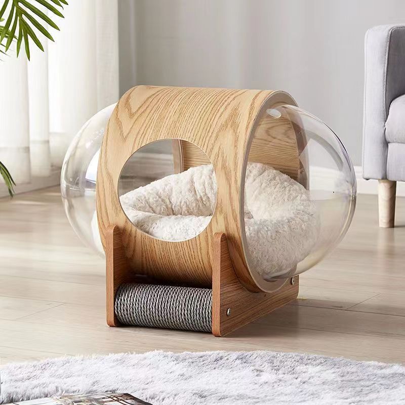 국경을 넘는 신형 우주 캡슐 고양이 집, 고양이 산후실, 사계절 사용 가능한 밀폐형 겨울 고양이 집, 따뜻한 원목 고양이 집스토어 가기