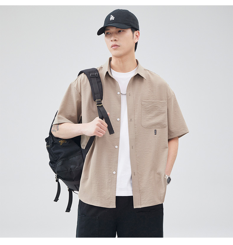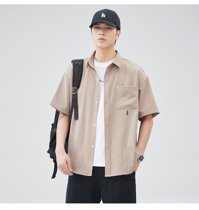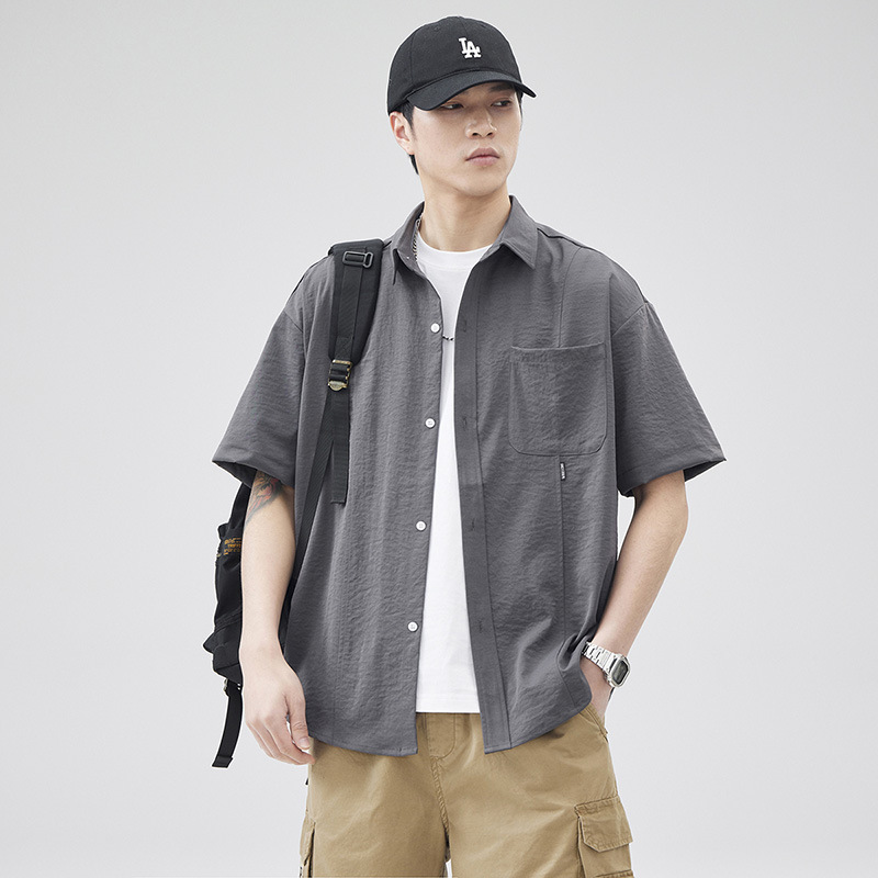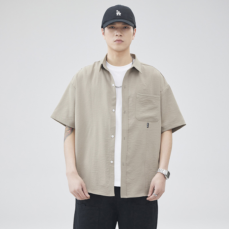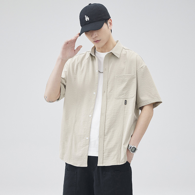 반팔 셔츠 재킷 남자 여름 새로운 솔리드 컬러 트렌디 브랜드 홍콩 스타일 느슨한 단순 올 매치 반소매 탑