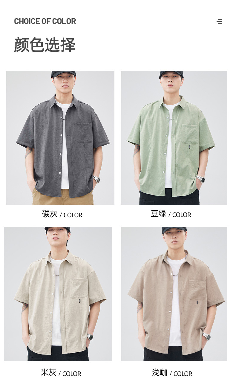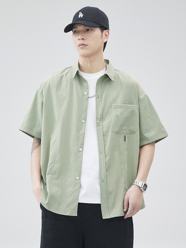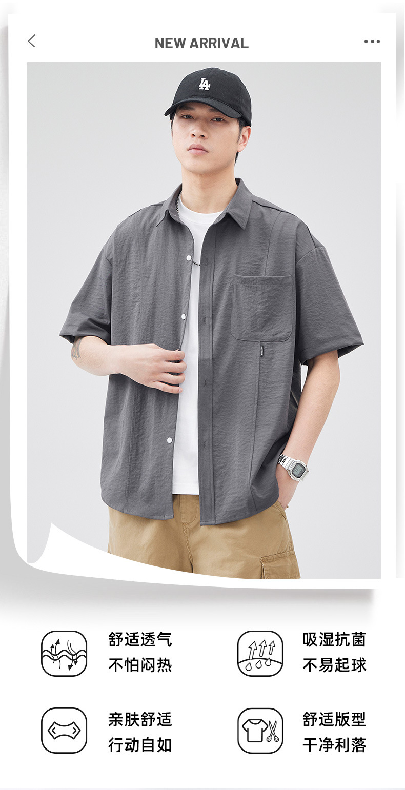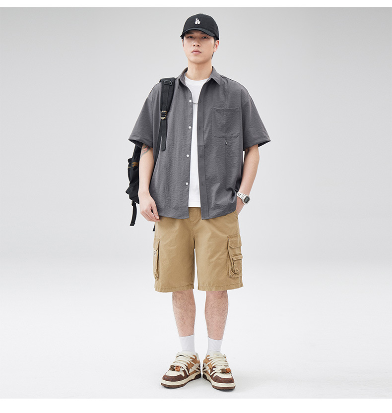 반팔 셔츠 재킷 남자 여름 새로운 솔리드 컬러 트렌디 브랜드 홍콩 스타일 느슨한 단순 올 매치 반소매 탑
