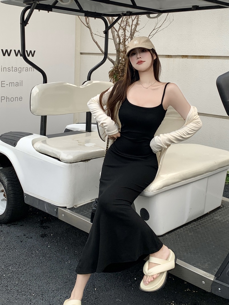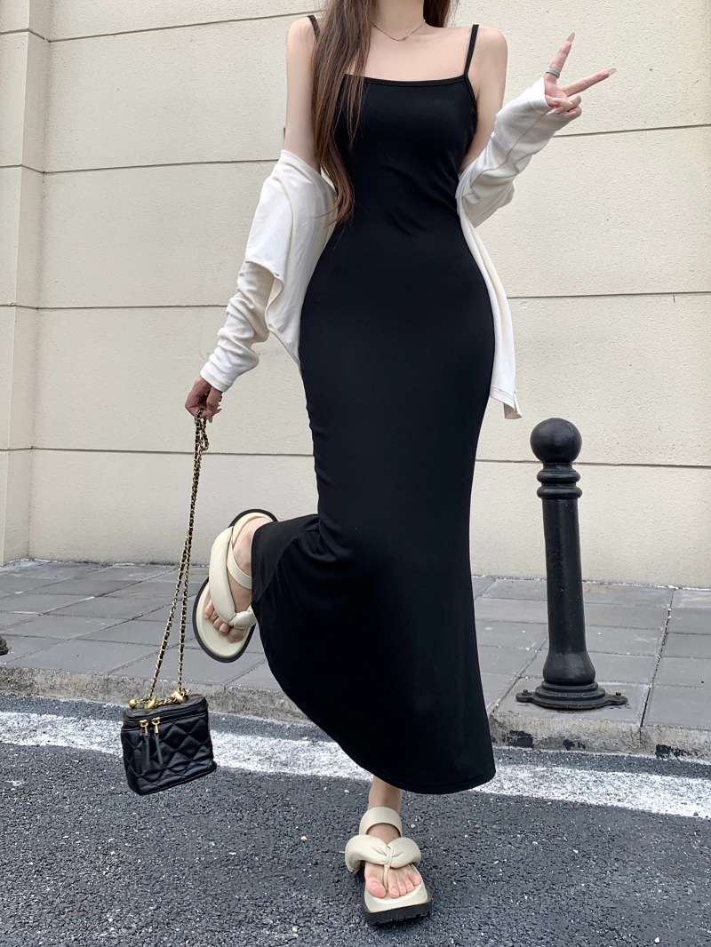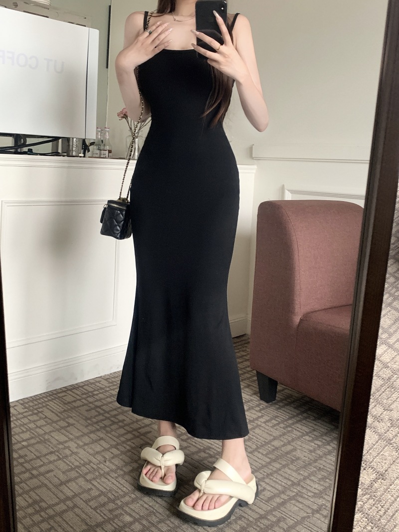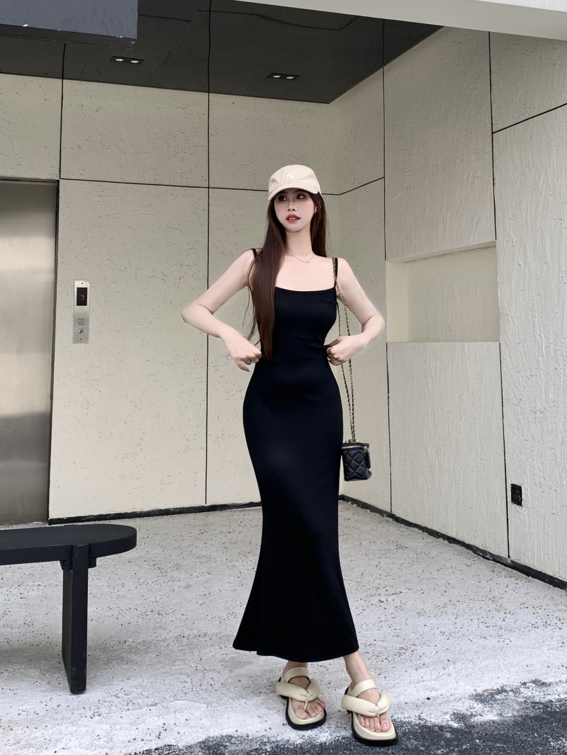 국경 간 대외 무역 도매 여름 코튼 얇은 스트랩 슬림 핏 내부 스트랩 원피스 여성용 피쉬 스커트 긴 힙합 스커트