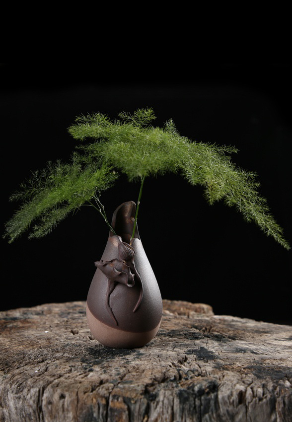조각 꽃 꽃병 중간 수제 세라믹 꽃병 물 심기 작은 꽃병 변수 선택적 붉은 도자기 가마 변수스토어 가기