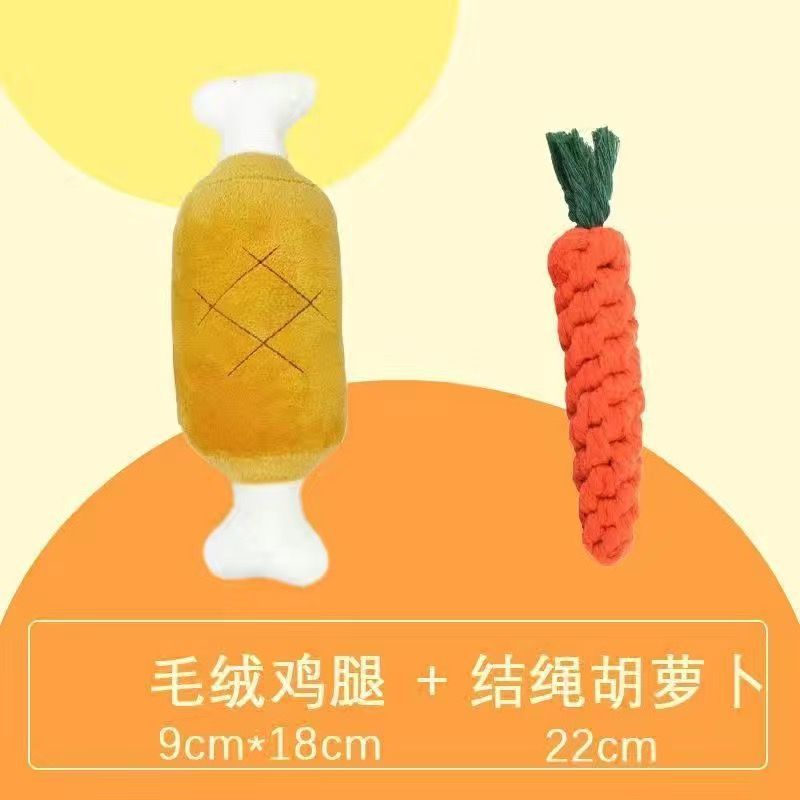 • 강아지 장난감 봉제 닭다리 + 당근 매듭