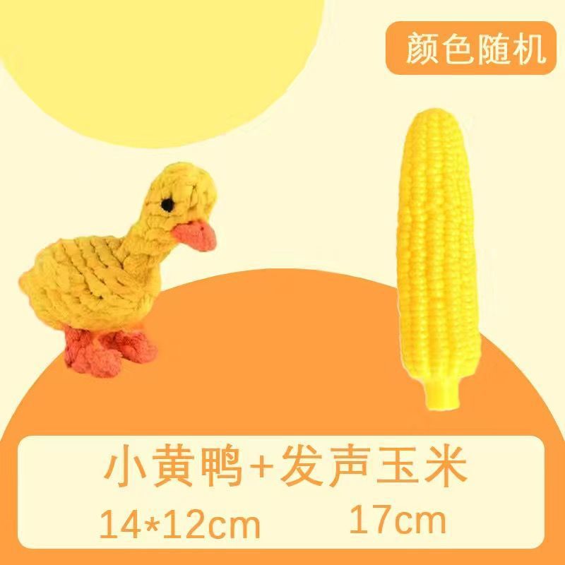• 3피스 강아지 장난감 세트: 노란 오리 목화 매듭 + 소리가 나는 옥수수 + 소리가 나는 땅콩