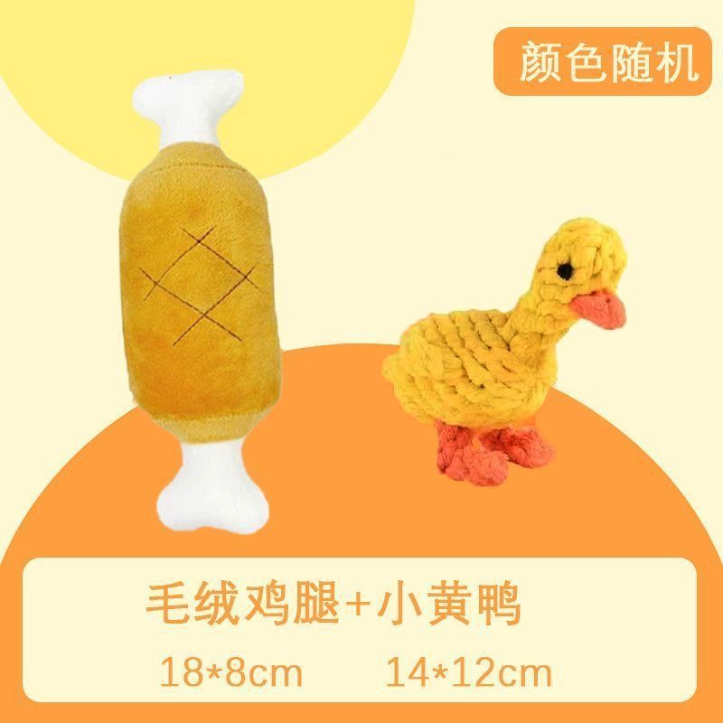 • 강아지 장난감 2종 세트: 노란 오리 매듭 + 닭다리