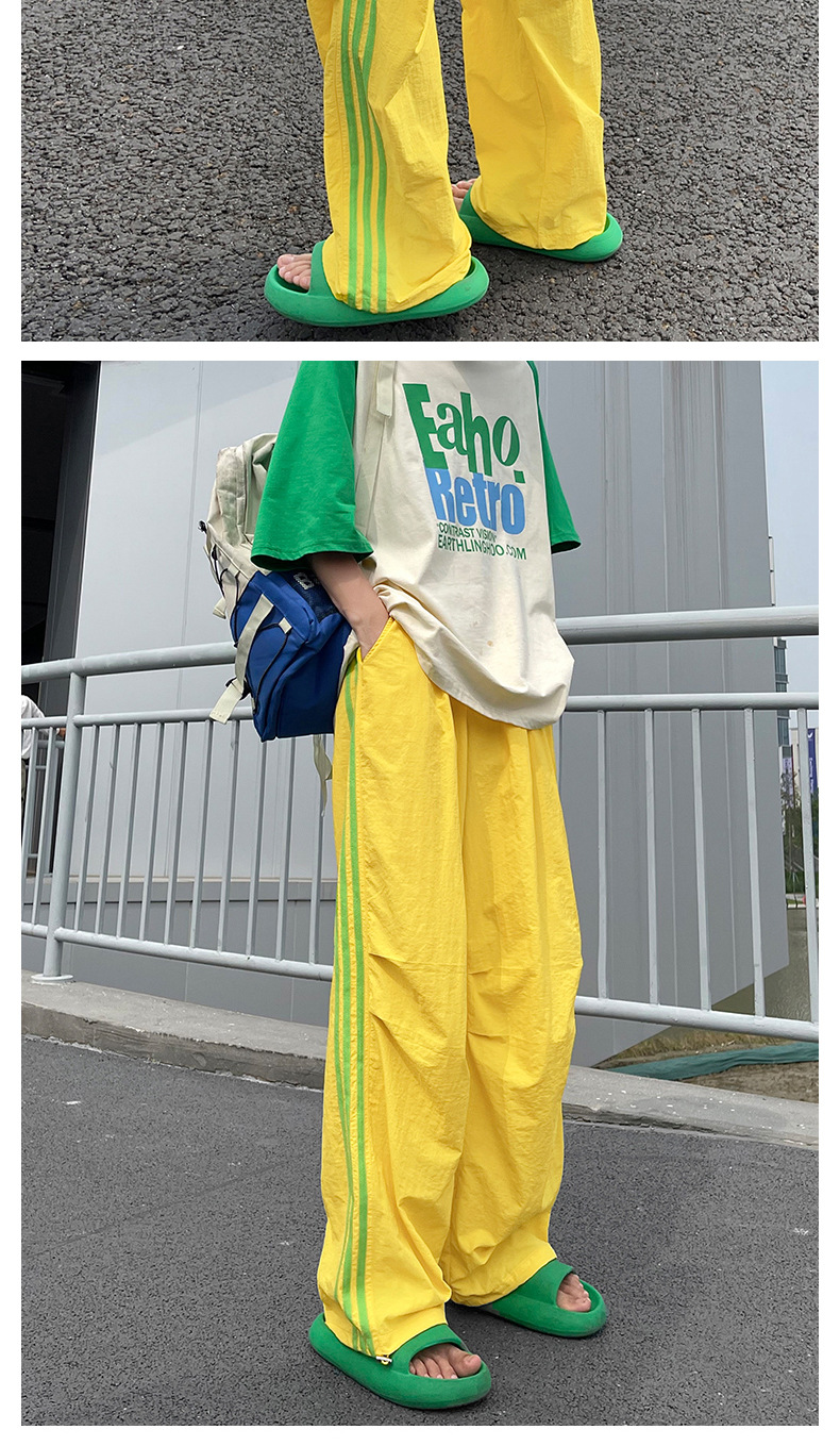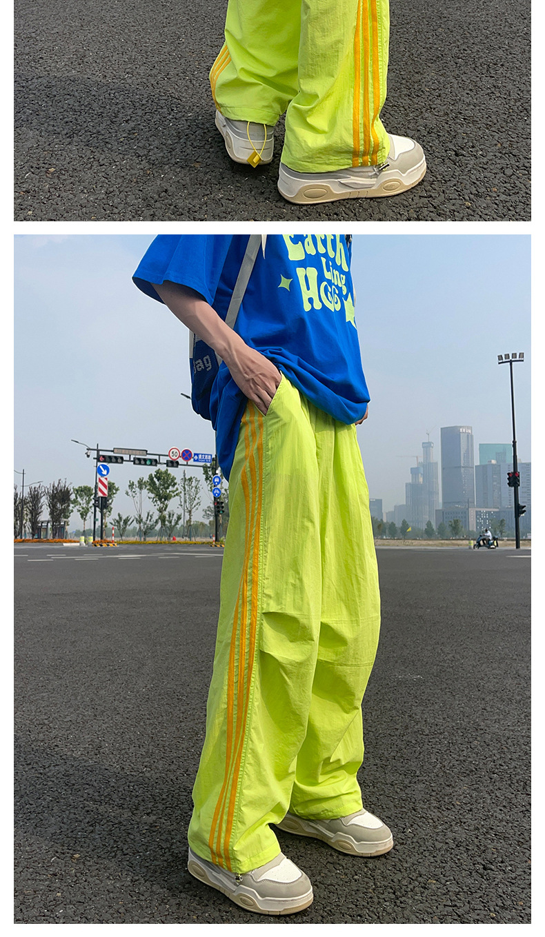 여름 TikTok Dopamine 착용 얇은 낙하산 바지 빠른 건조 테더 3 바 캔디 컬러 아이스 실크 바지스토어 가기
