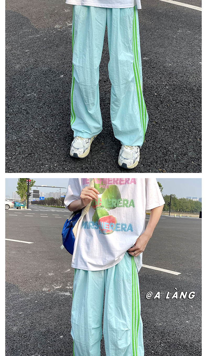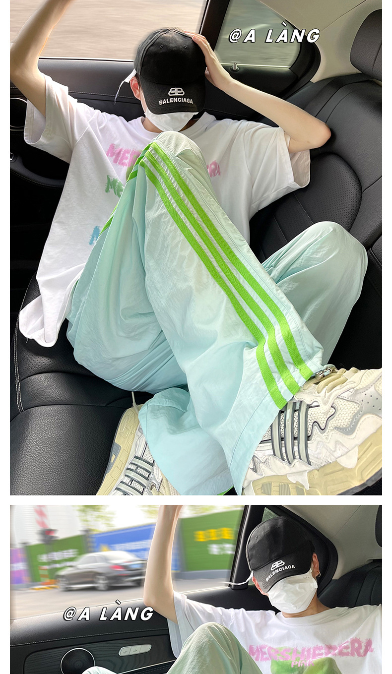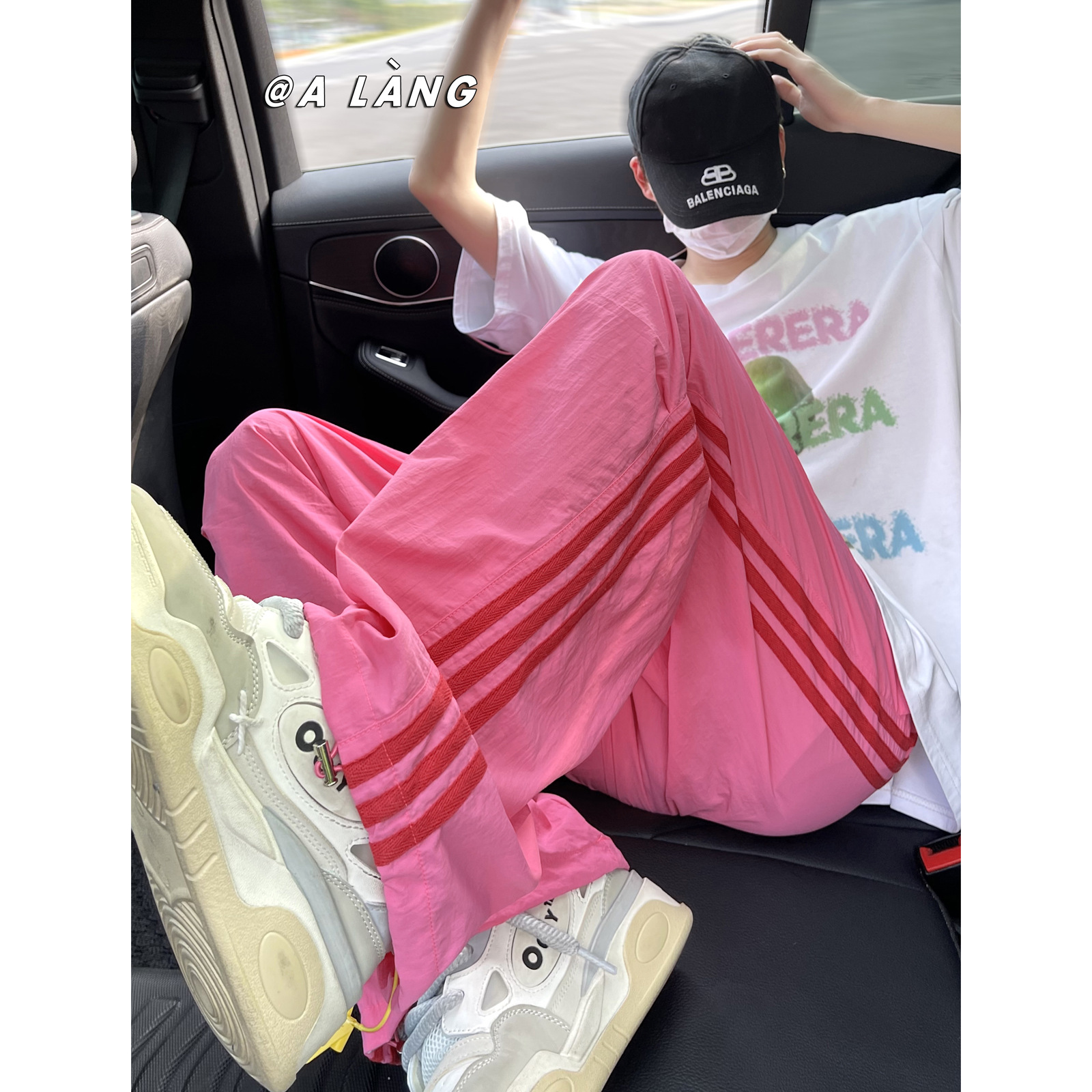 여름 TikTok Dopamine 착용 얇은 낙하산 바지 빠른 건조 테더 3 바 캔디 컬러 아이스 실크 바지