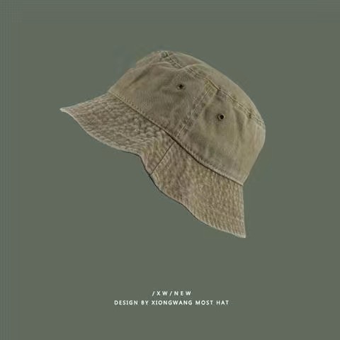 홍콩 스타일 빈티지 세탁 데님 어부 모자 유행 올드 올 매치 햇빛 분지 모자 통기성 일반 얼굴 음영 작은 모자스토어 가기