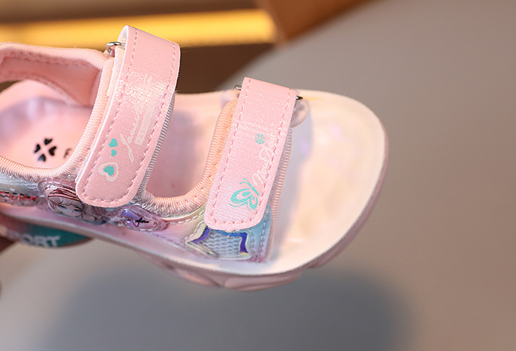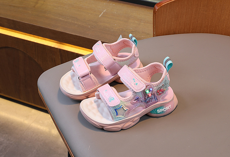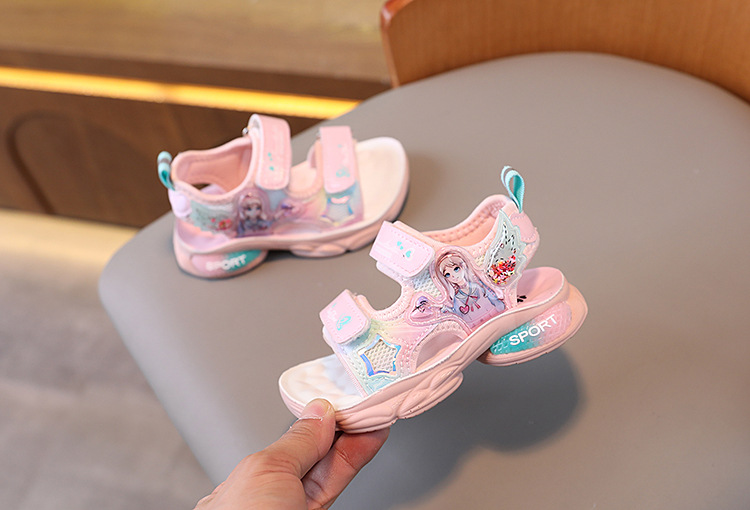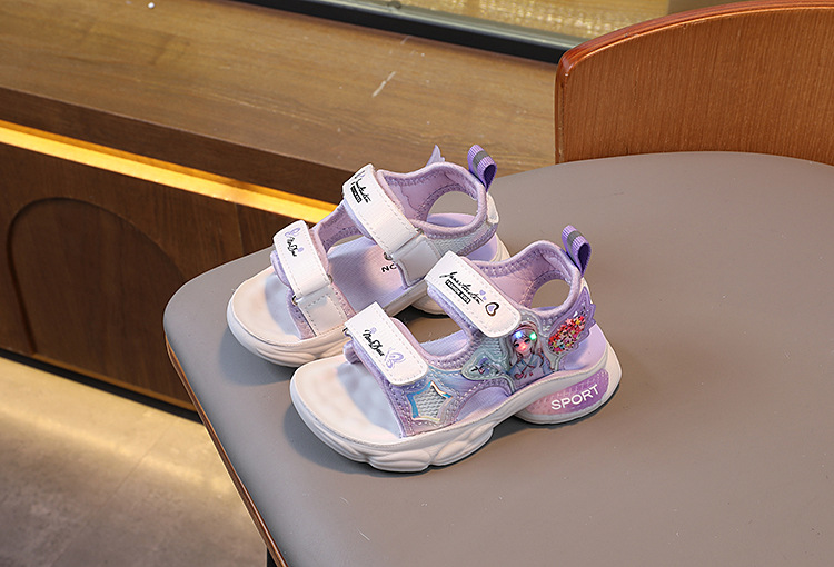 조명 소녀 샌들 2024 여름 새로운 공주 어린이 해변 신발 소프트 단독 아기 소녀의 유아 신발 어린이스토어 가기